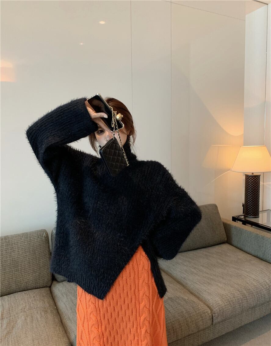 ブラックセーター ルーズスプリングスタイルニットファートップス ロング 春物 セブンプリンセス17079678361