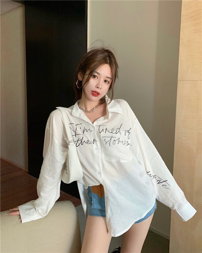シャツ レディーススタンダードスプリング薄手トップス 長袖スリーブルーズホワイト ロング レトロ 春物 セブンプリンセス25108473958