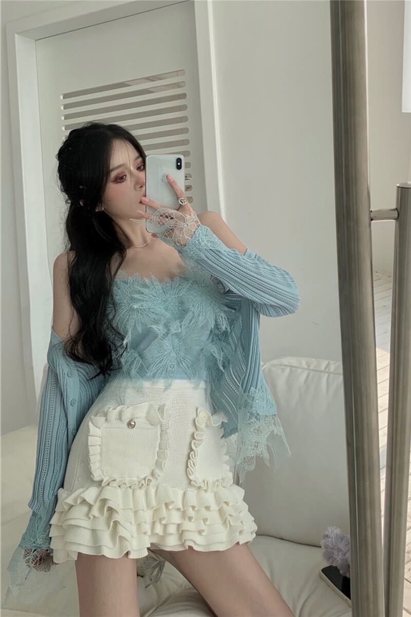 色:ホワイトサスペンダー,白いカーディガン,ピンクのサスペンダー,ピンクのカーディガン,青いスリング,ブルーカーディガン