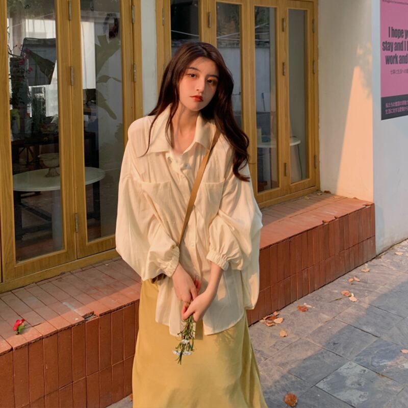 シャツ スプリング薄手ロングトップス レディースルーズスタンダード レトロ 春物 セブンプリンセス48524714728
