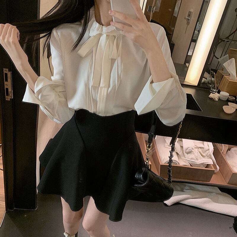 ホワイトシャツ ジャケット スプリングスタンダードシフォン ロング レトロ 春物 セブンプリンセス3330746377