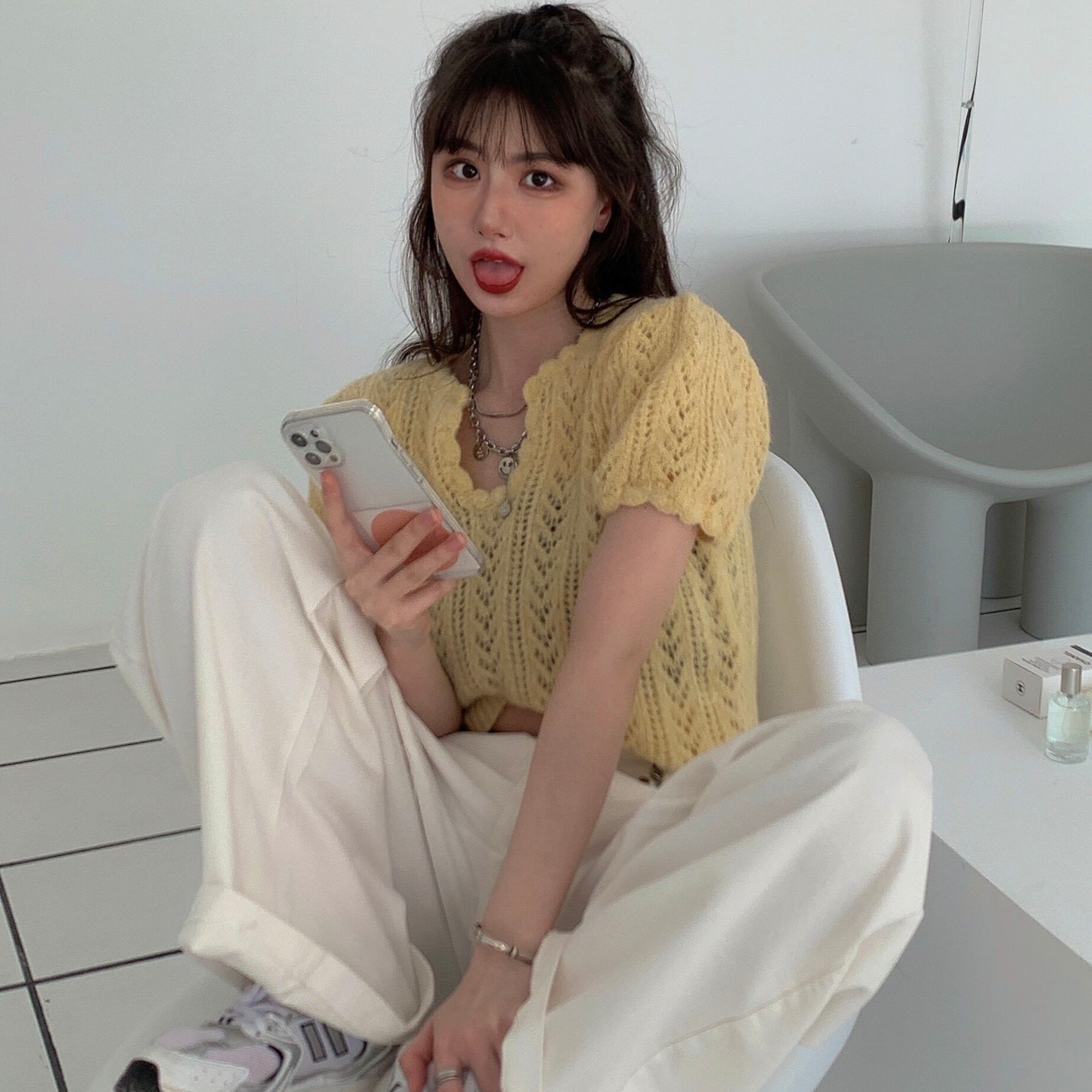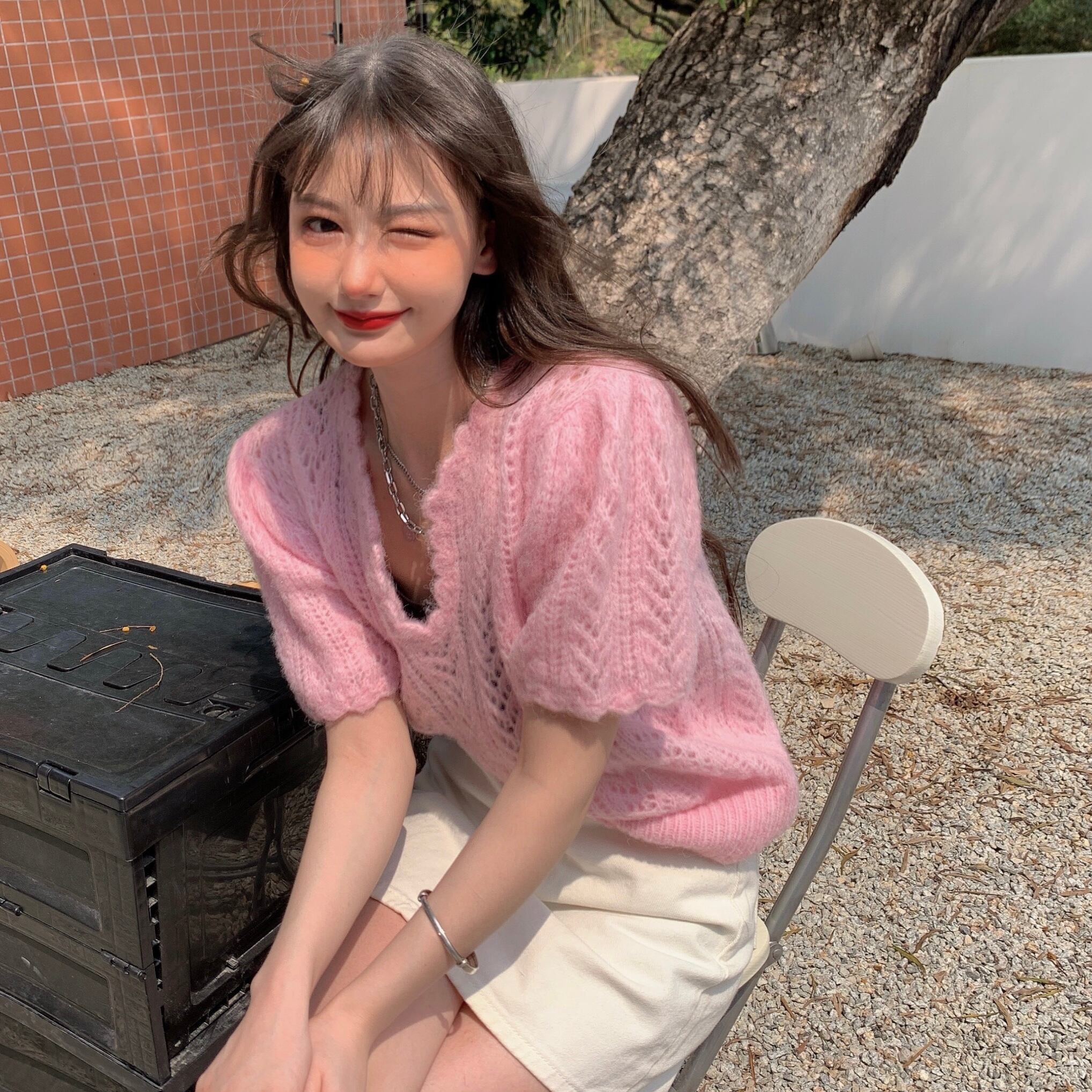 ニットセーター 薄手レディースサマーVネックショートルーズスタイルトップス 夏物 セブンプリンセス59291547121