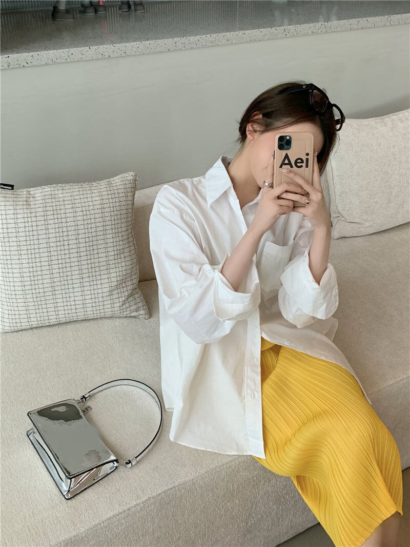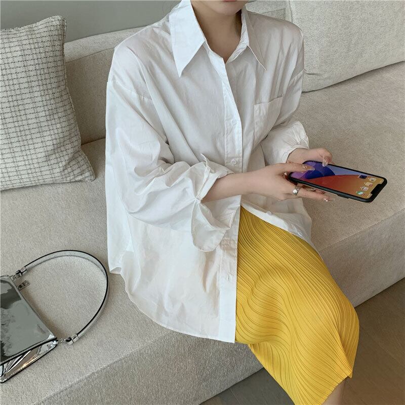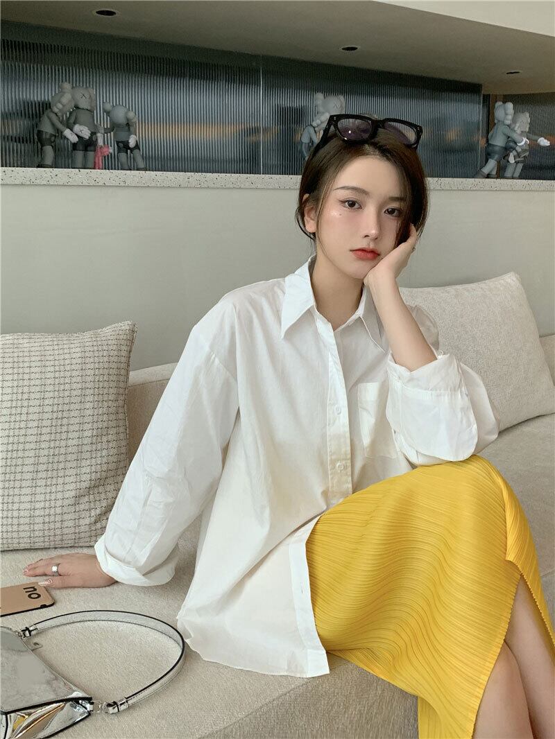 シャツ レディーススタンダードサマーホワイトルーズ薄手スタイルトップス ロング レトロ 夏物 セブンプリンセス86006165862