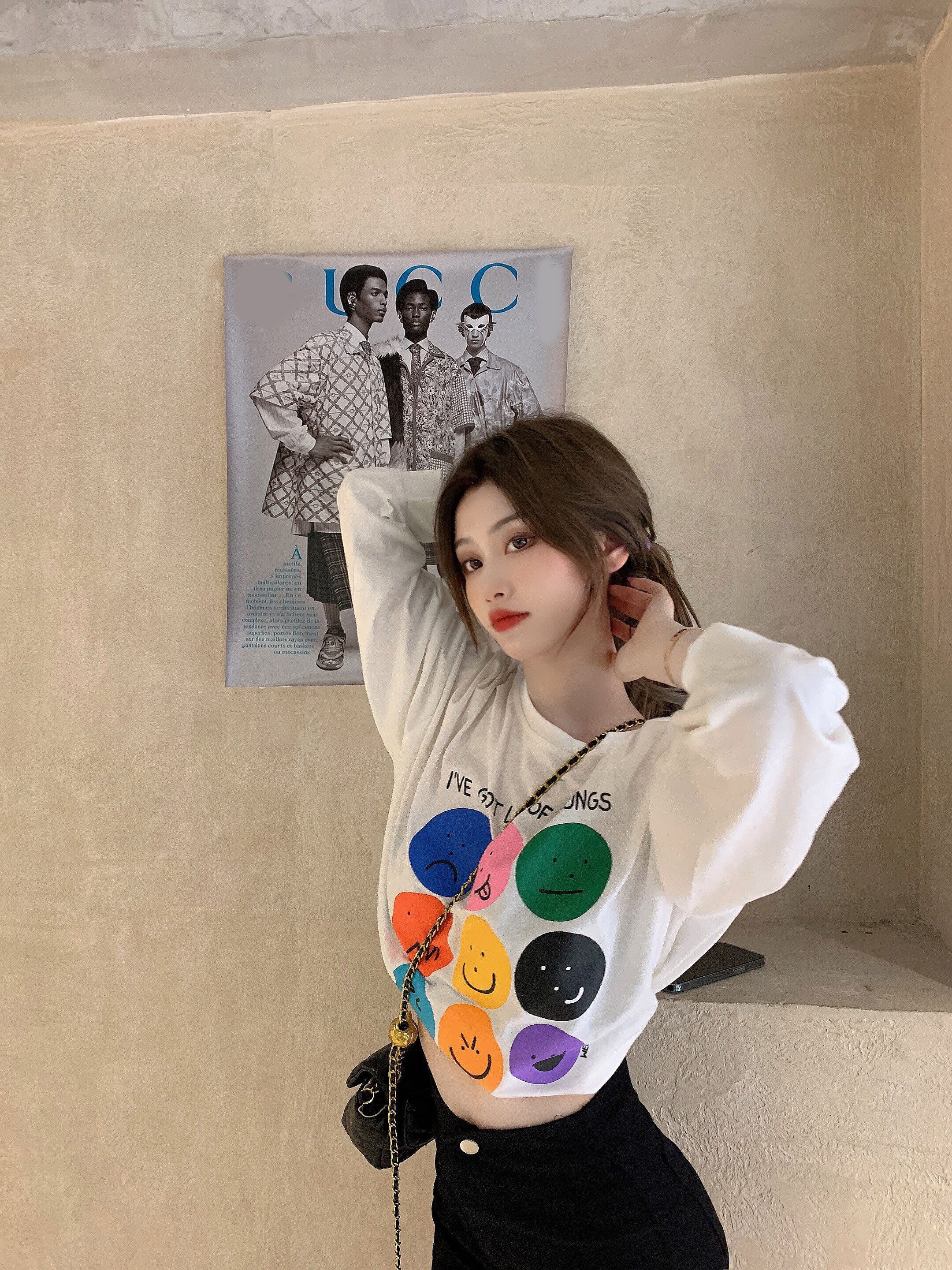 Tシャツ シャツ レディーススプリングルーズホワイトプリントトップス ロング 春物 セブンプリンセス57300883851