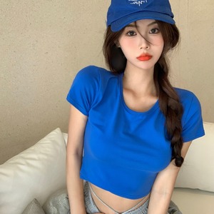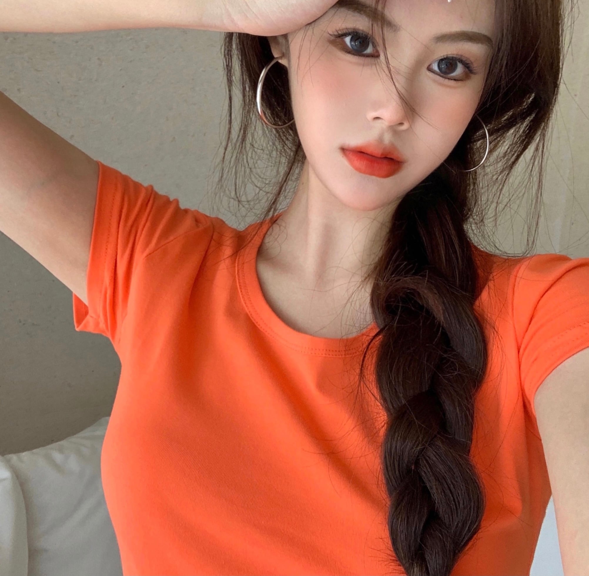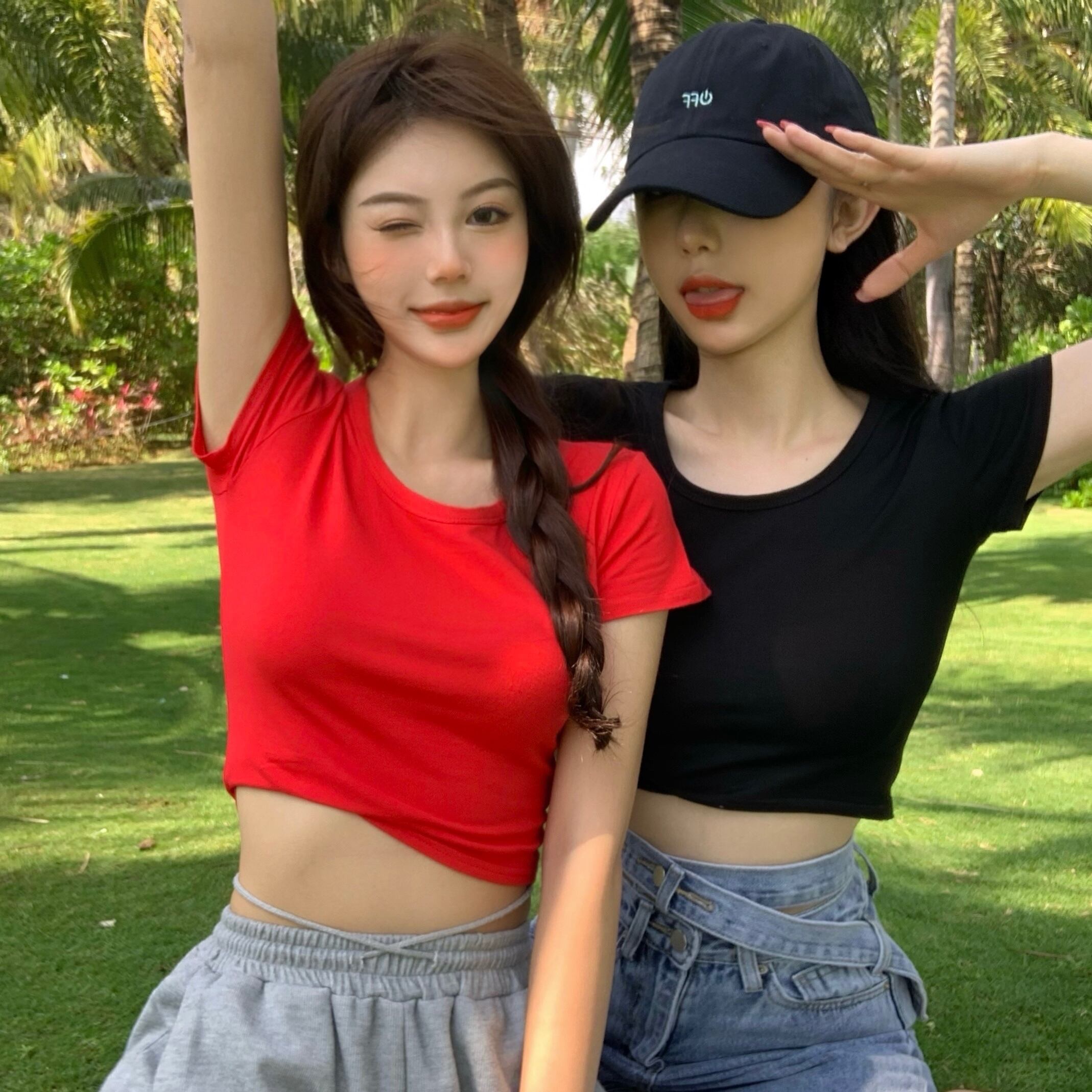 レッドラウンドネックソリッド カラーショートマルチカラーTシャツ Oネック ソリッドカラー セブンプリンセス87925399086