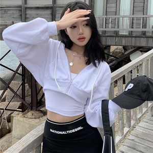 フードセーター ショートジャケット サマールーズホワイト薄手ジッパーカーディガントップス 夏物 セブンプリンセス70378884401