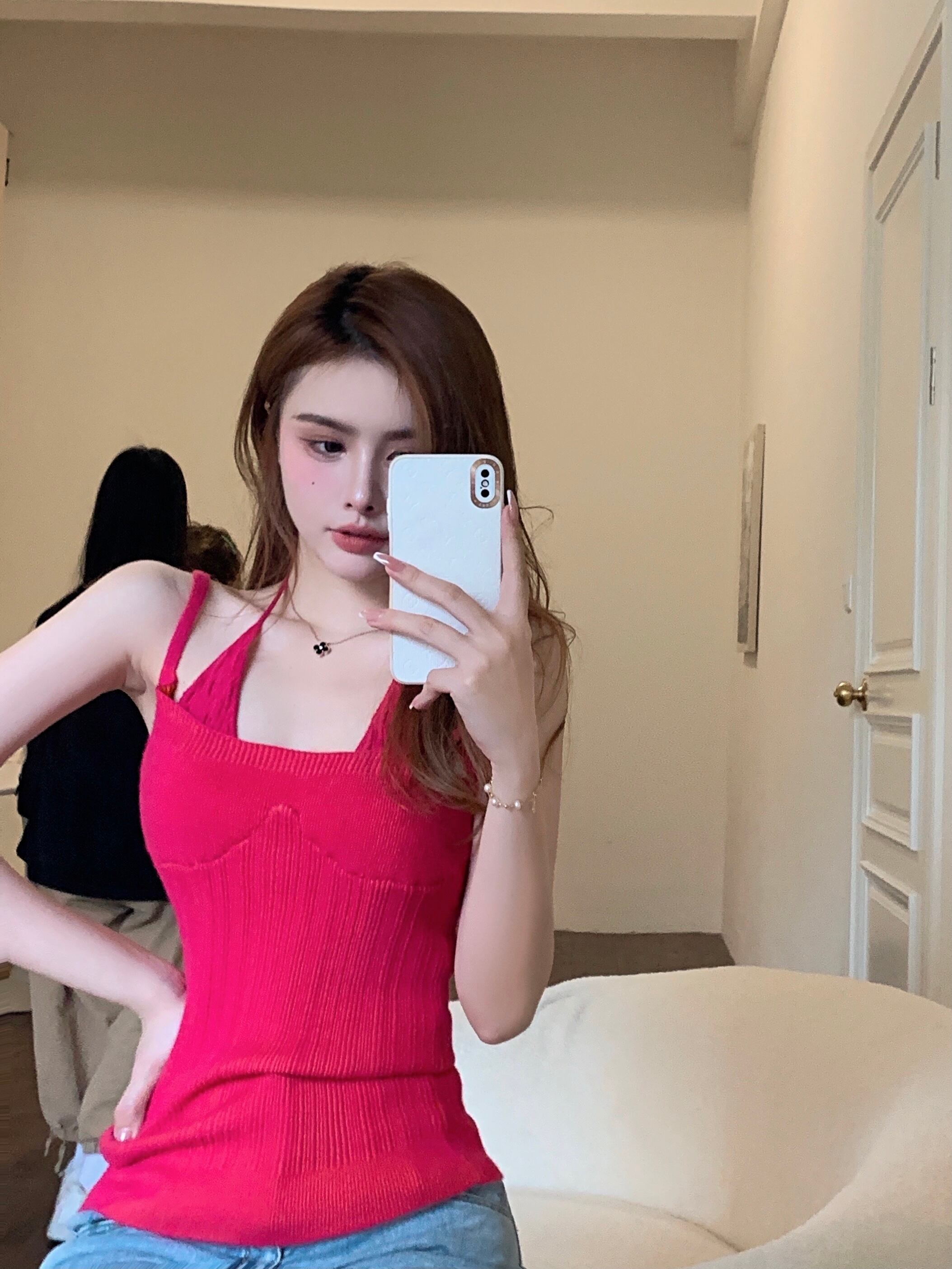 ホルターニットサマースリムノースリーブトップス 夏物 セブンプリンセス376163178