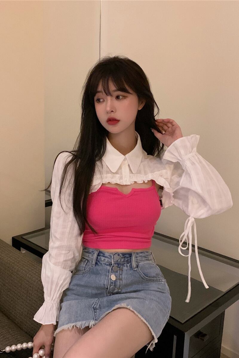 ホワイトシャツ トップス サマーショートスタンダードレッド ロング レトロ 夏物 セブンプリンセス71886446770