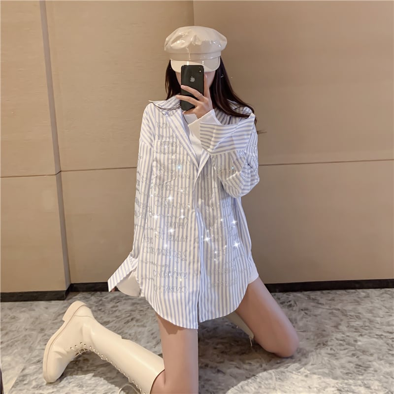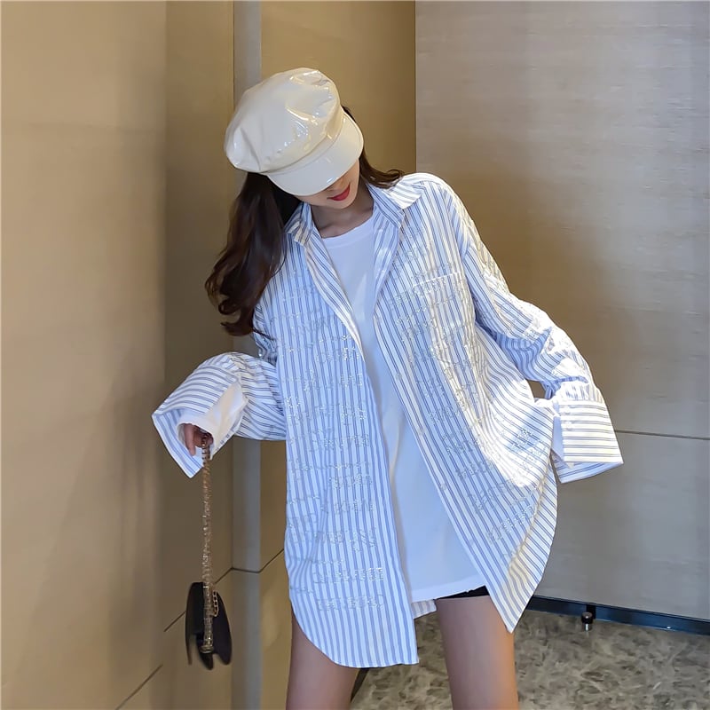 ストライプシャツ スプリングルーズロング 春物 セブンプリンセス17525253882