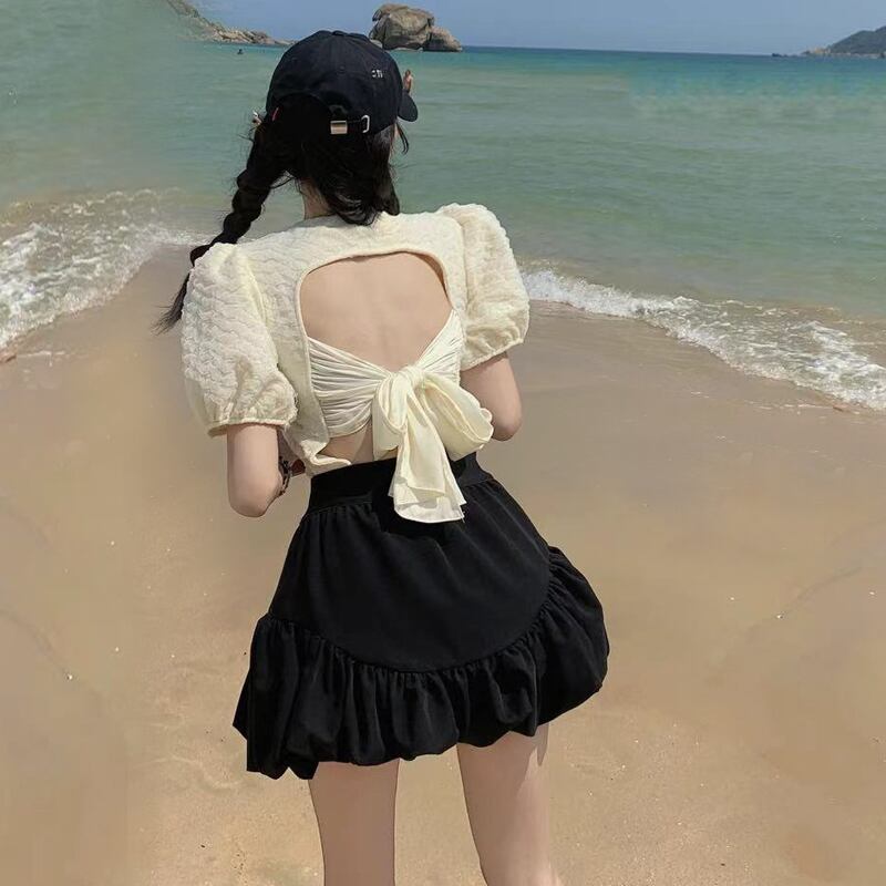 ホワイトシャツ サマースリムホルタートップス ショートスタンダードスタイル レトロ 夏物 セブンプリンセス1458062644