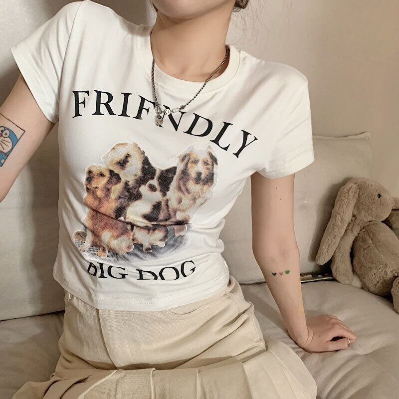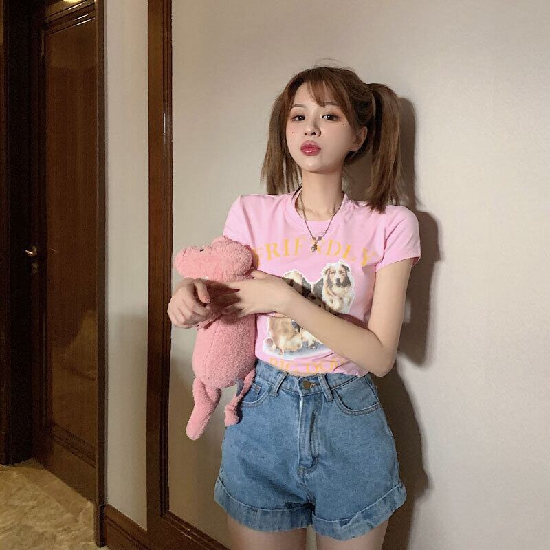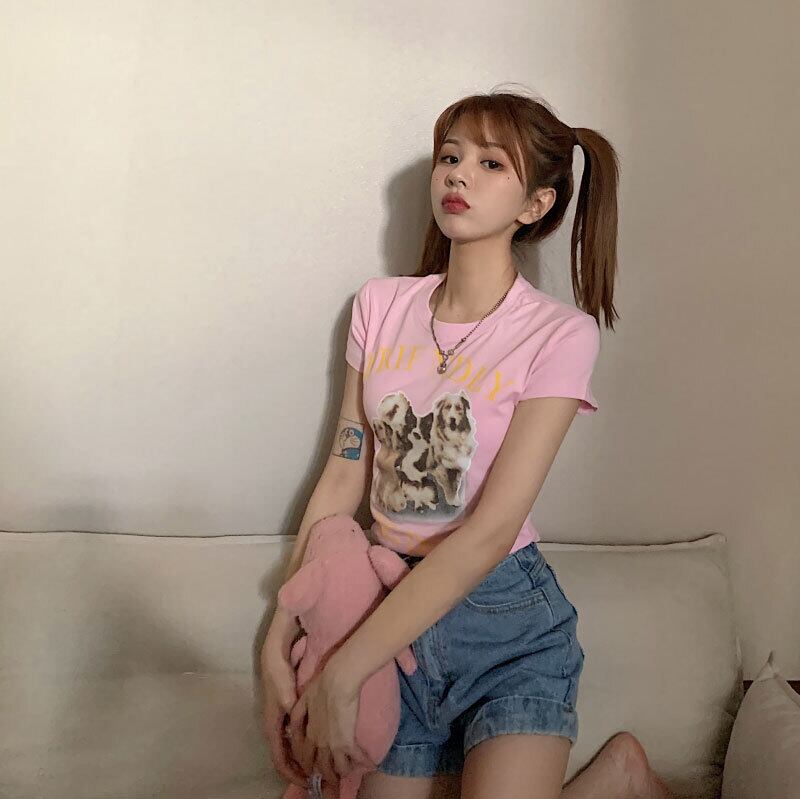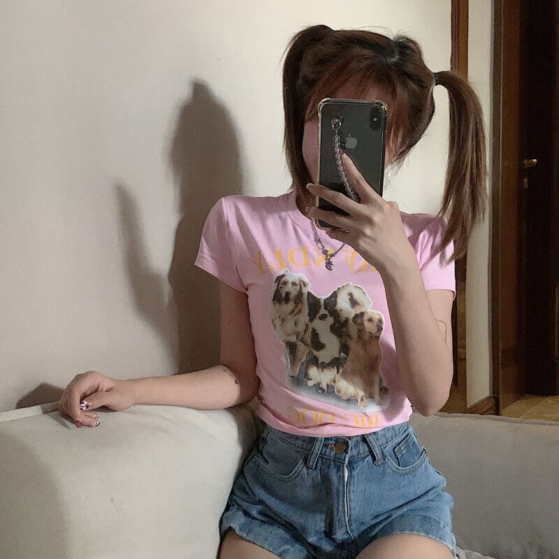 ショートTシャツ シャツ レディースサマープリント柄スタンダードスリムレッドトップス レトロ 夏物 セブンプリンセス78718752399