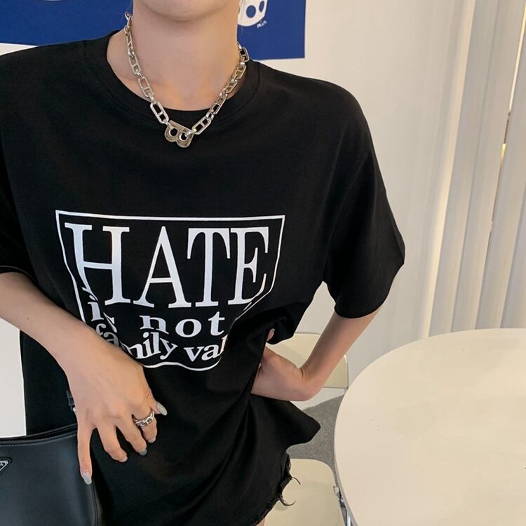 Tシャツ サマープリントスタイルルーズ薄手ラウンドネックレッドトップス ストリート 夏物 Oネック セブンプリンセス9162305060