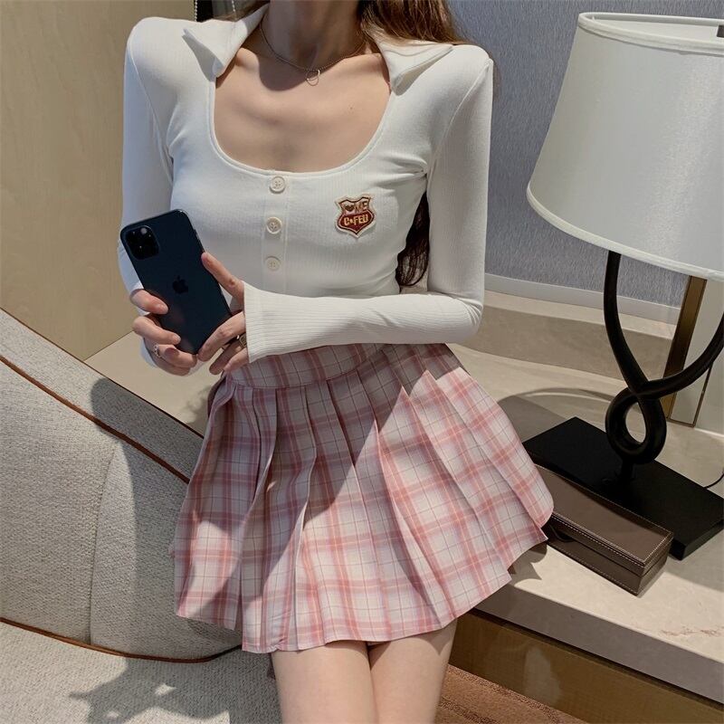 スカート スプリングサマーショートスタイルハイウェストウェストプリーツ ピンク 春物 夏物 セブンプリンセス43700798418