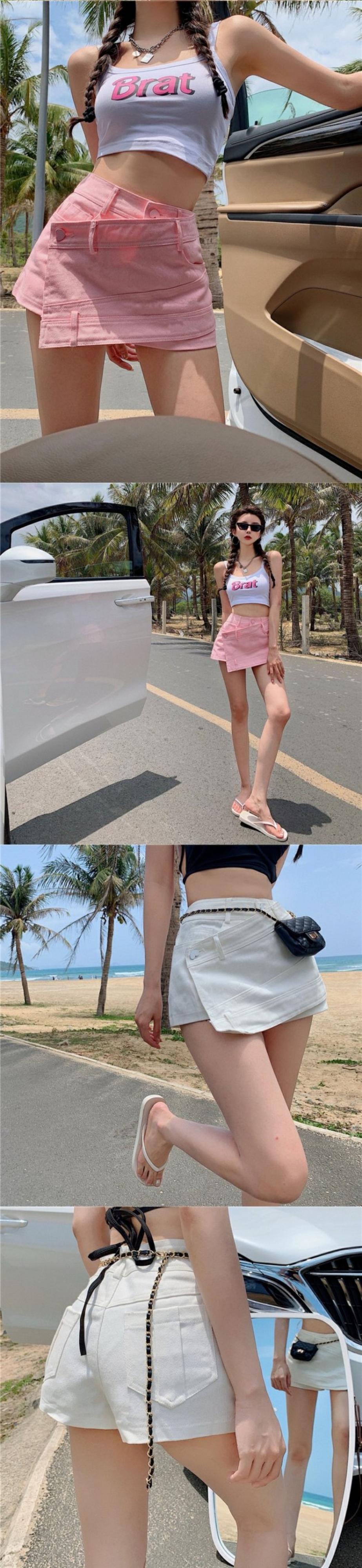 ショーツ レディースサマーハイウェストウェスト薄手パンツ ルーズ ピンク 夏物 ブルマー セブンプリンセス59513973030