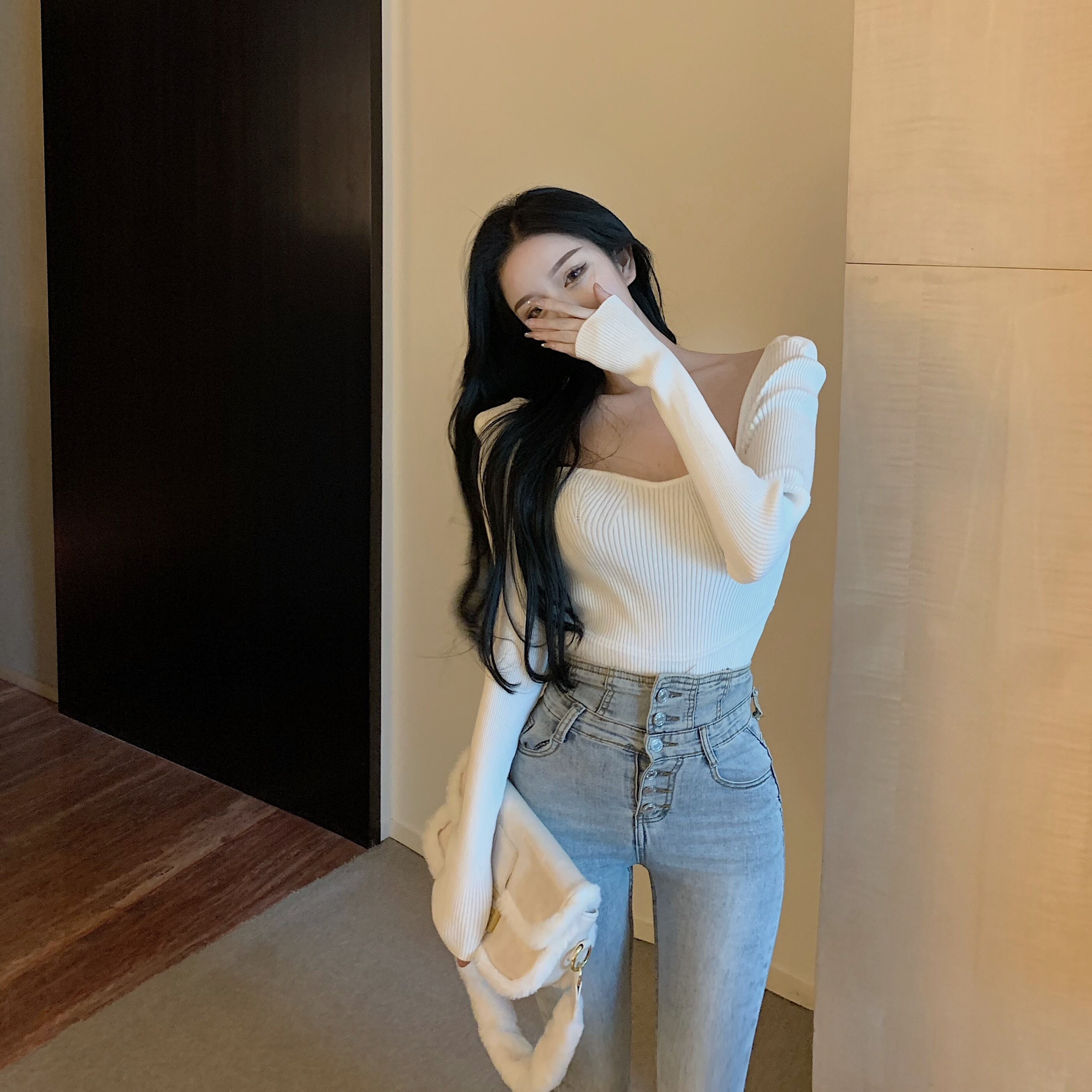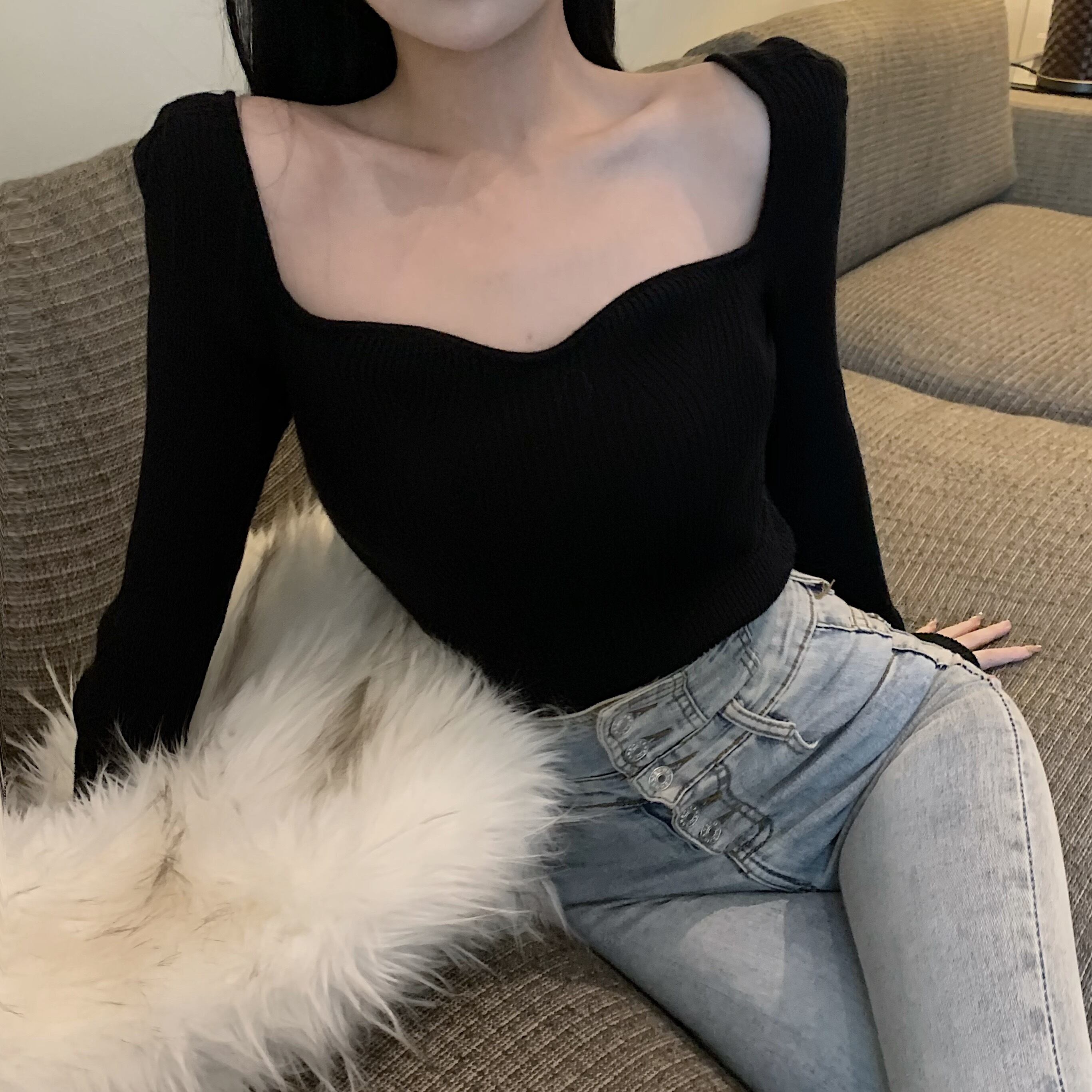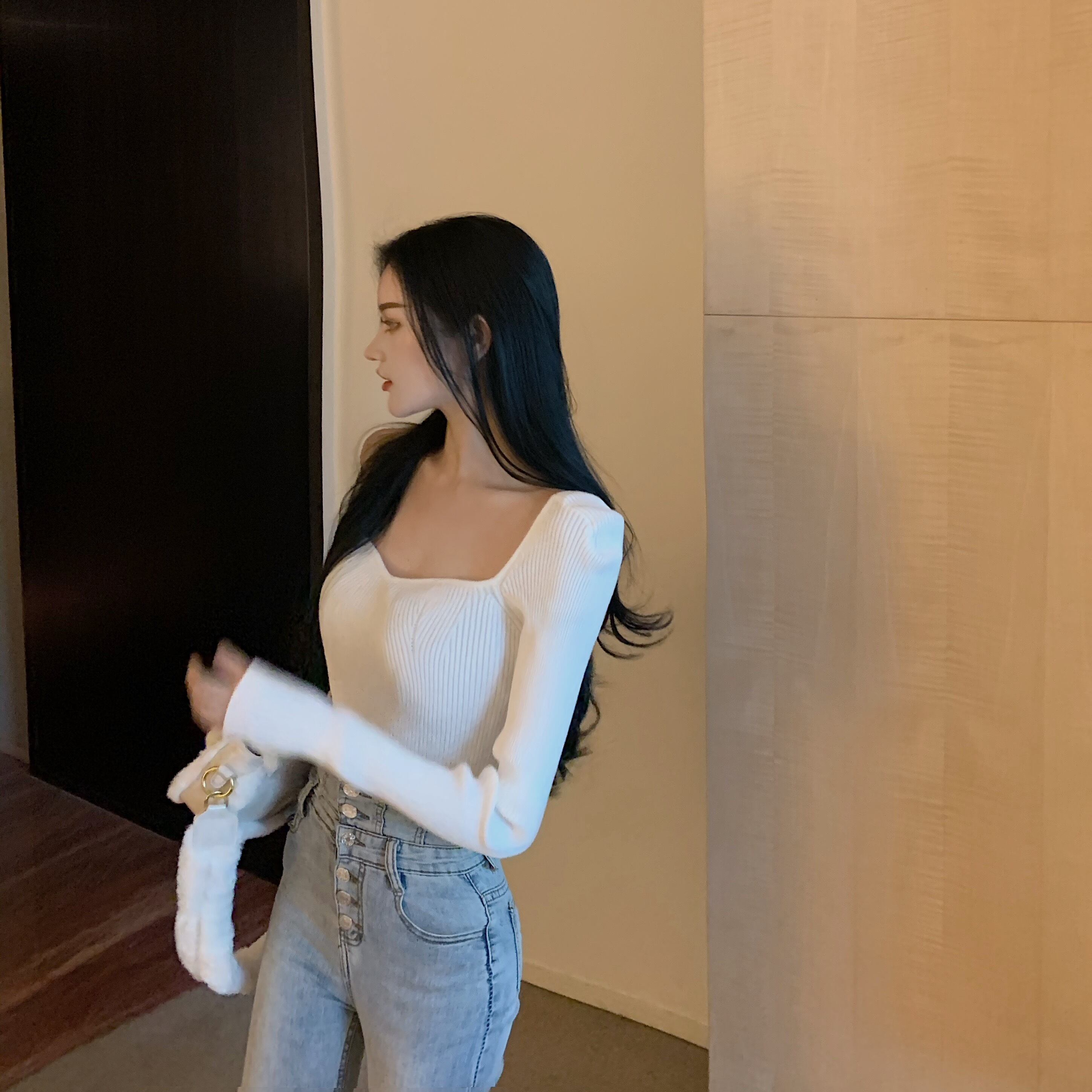 ホワイトセーター シャツ スプリングスタイルプルオーバー スリムトップス ロング 春物 スクウェア セブンプリンセス48725268929