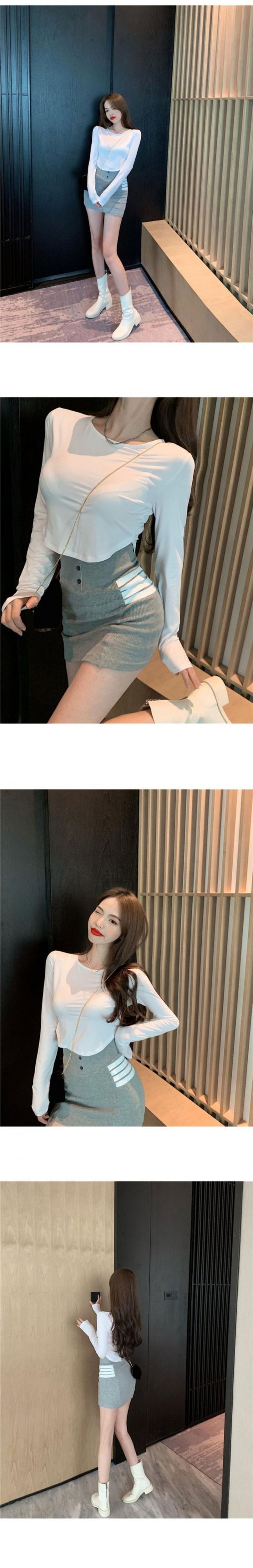 ホワイトTシャツ シャツ ロングスプリングスリムショートクロップトップ トップス 長袖 春物 セブンプリンセス90942057593