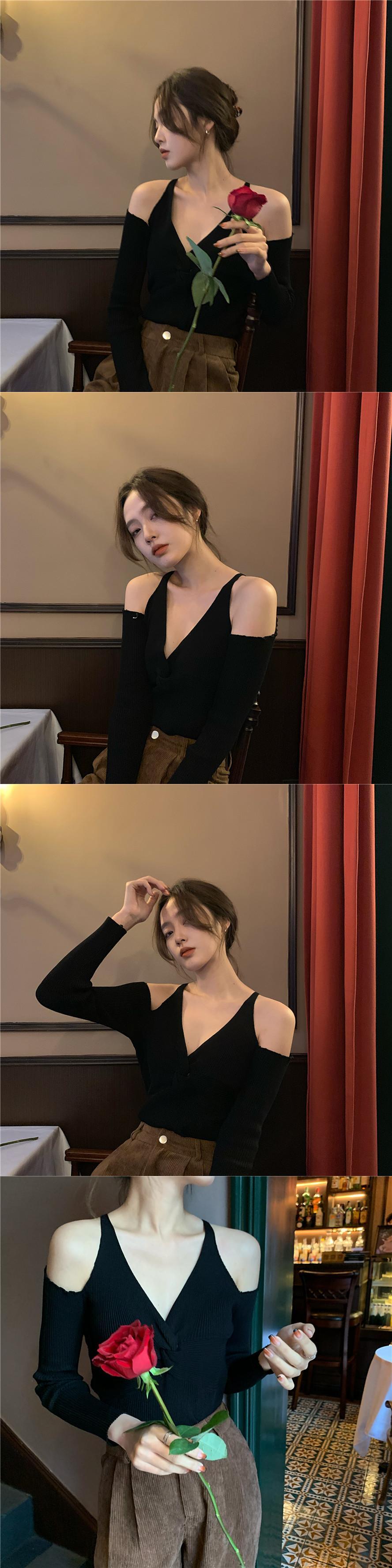 Vネックセーター スプリングシャツ スリムスタイル ロング 春物 セブンプリンセス11384650665