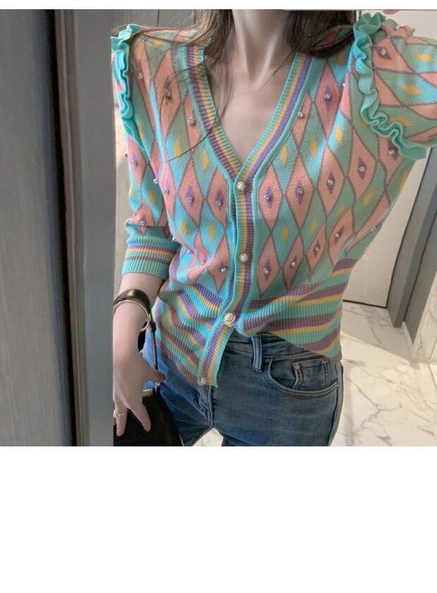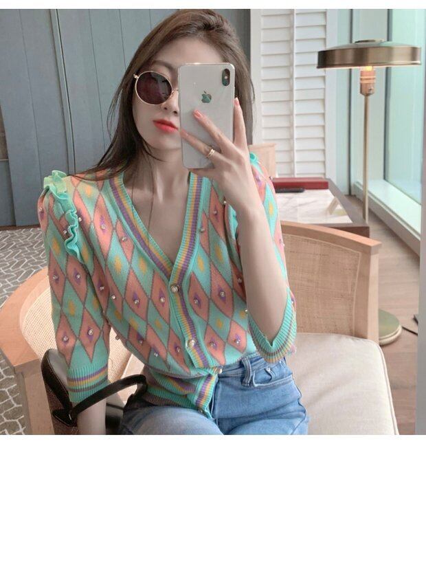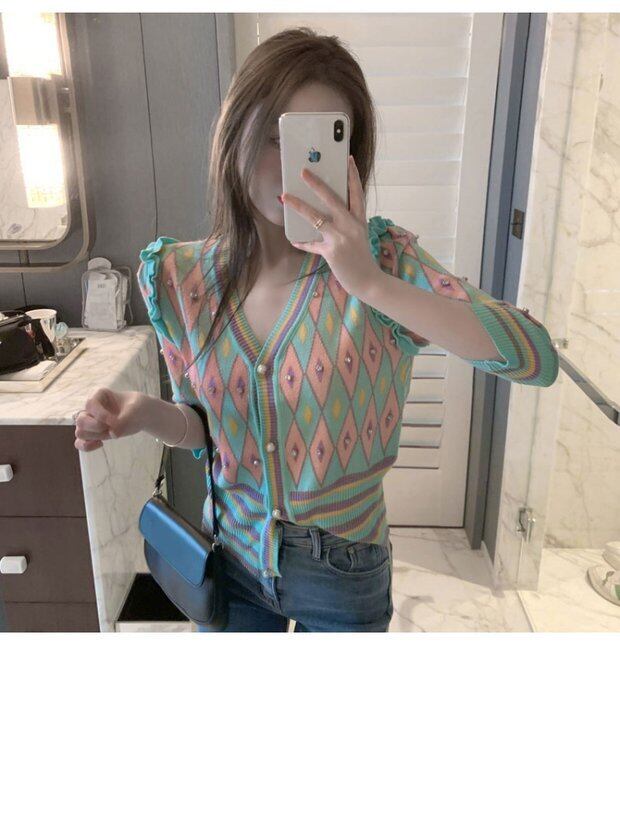 ニットショートサマー薄手カーディガンジャケット スタイルVネックセーター トップス 夏物 シルク セブンプリンセス61508292602