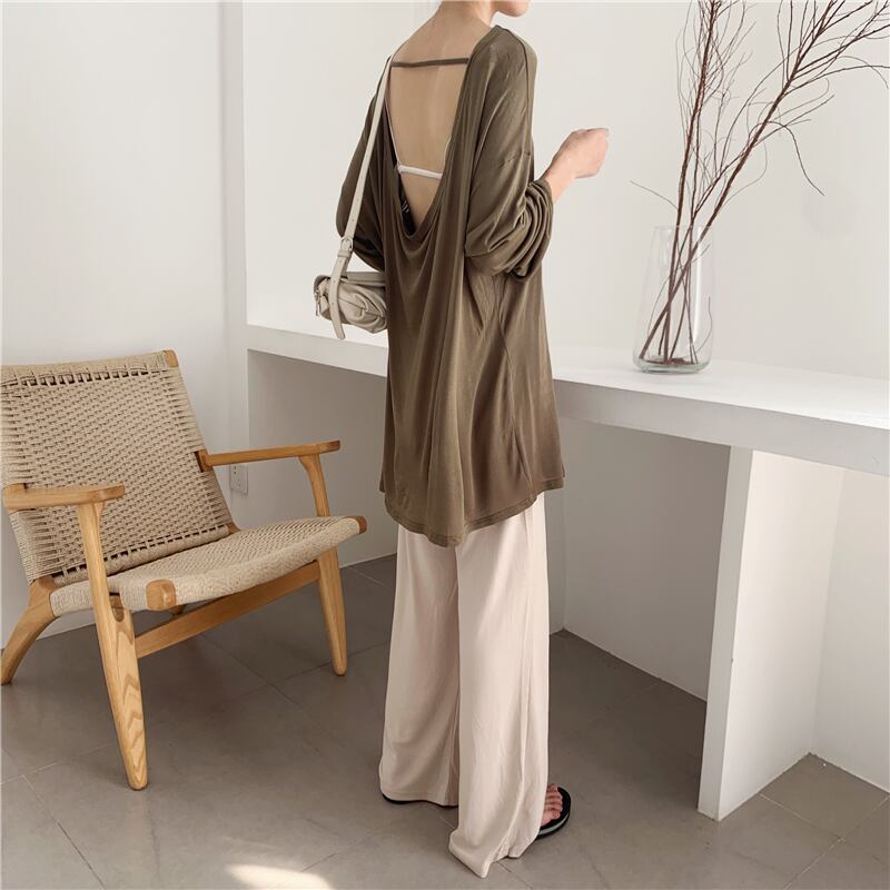 ルーズTシャツ シャツ レディーススプリングホルターカジュアルトップス ロング 春物 セブンプリンセス53875567675
