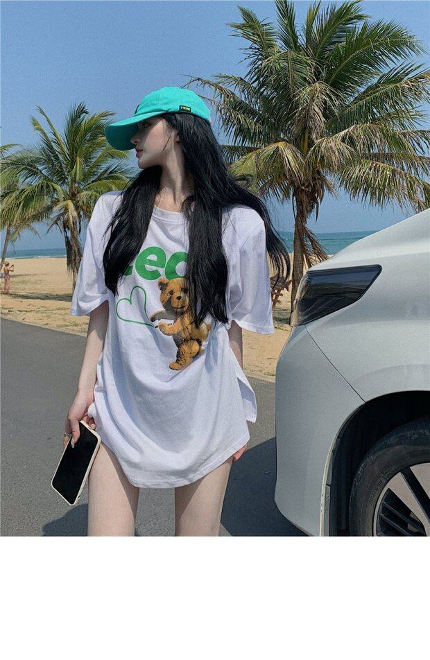 ルーズTシャツ シャツ レディースサマープリント柄トップス 夏物 セブンプリンセス22557428553