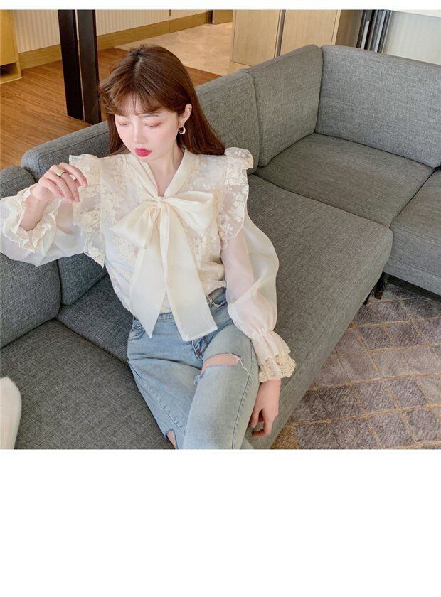 レースシャツ スプリングルーズスタイルリボン ロング 大人ガーリー スウィート キュート カジュアル 春物 セブンプリンセス22111624465
