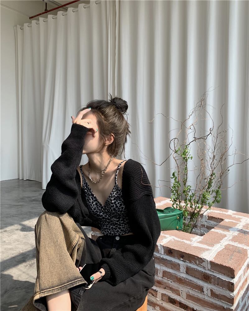 ショートブラックカーディガンセーター ジャケット レディーススプリングオータムトップス ロング 春物 秋物 セブンプリンセス4434323527