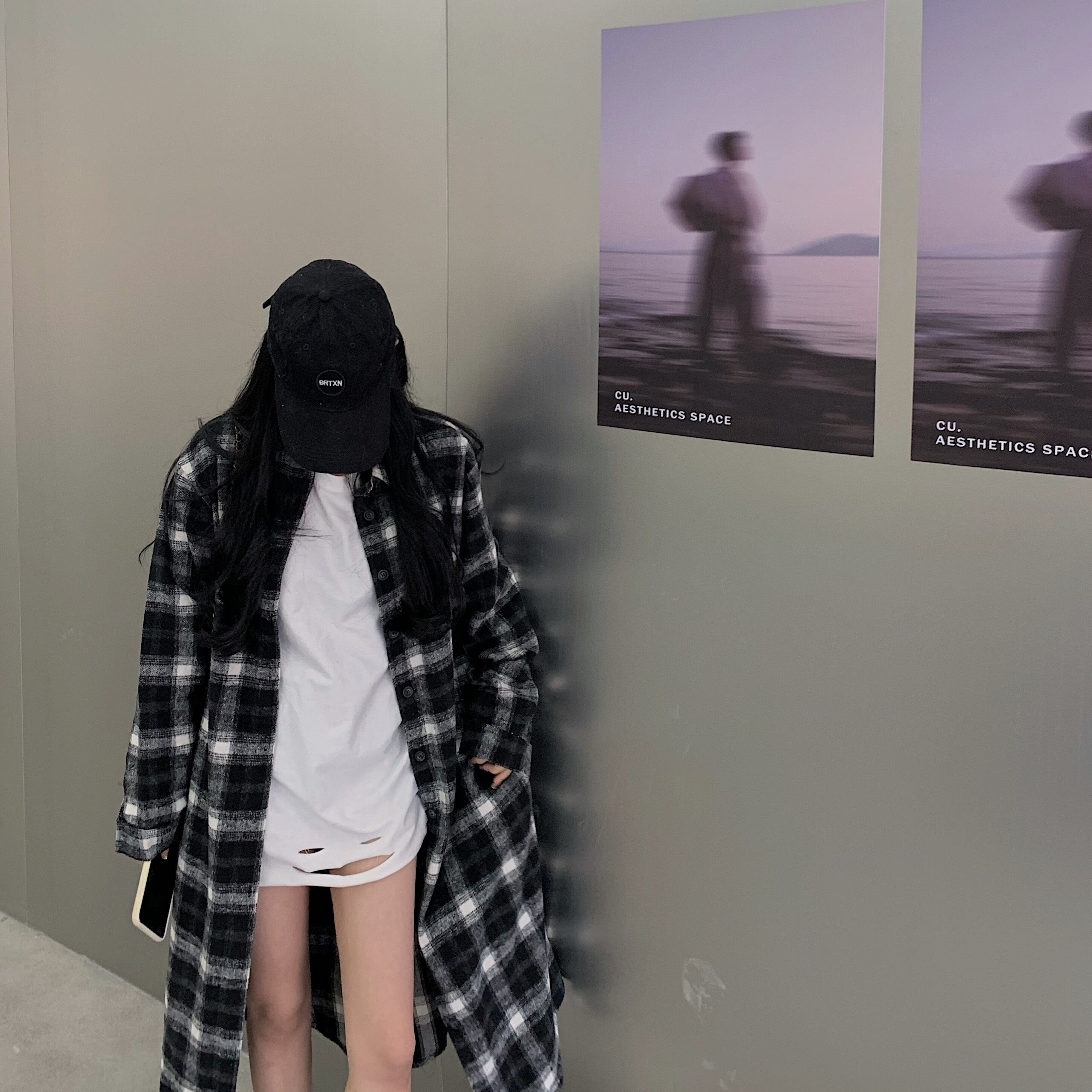 ブラックホワイト格子柄シャツ レディーススプリングオータムルーズカーディガンスタンダードジャケット ロング レトロ 春物 秋物 セブンプリンセス19756673353