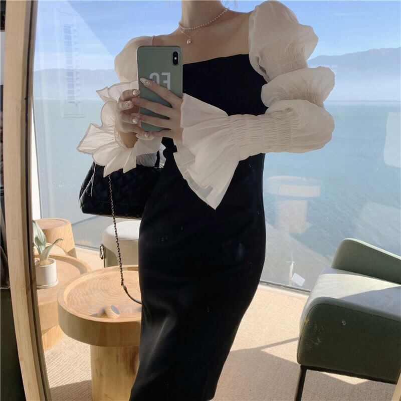 ドレス スプリングスリムスカート スリーブ 春物 スクウェア セブンプリンセス16661022556