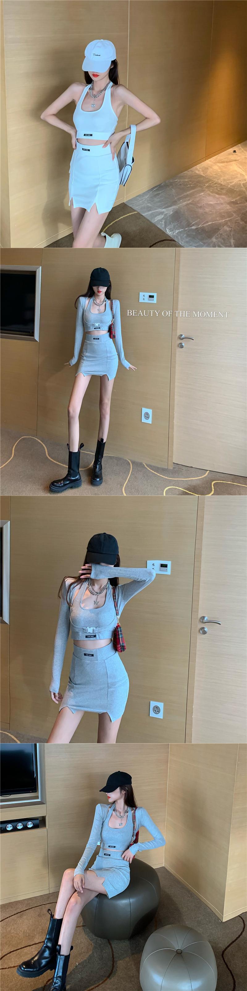 色:グレーのサスペンダー+ショーツ,ホワイトサスペンダー+ショートスカート,黒ストラップ+ショーツ,グレーコート,黒いジャケット,白いコート