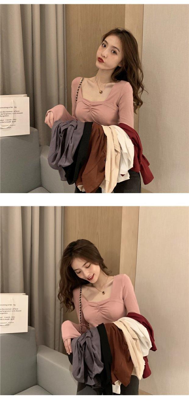 スプリングシャツ ブラウス スタイル長袖スリーブTシャツ ロング 春物 スクウェア セブンプリンセス62145640640