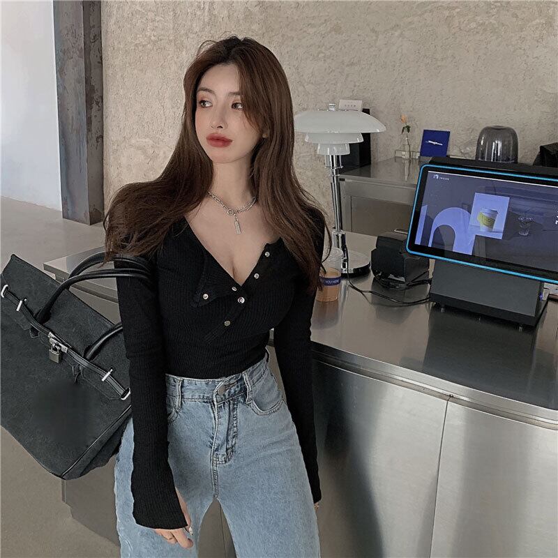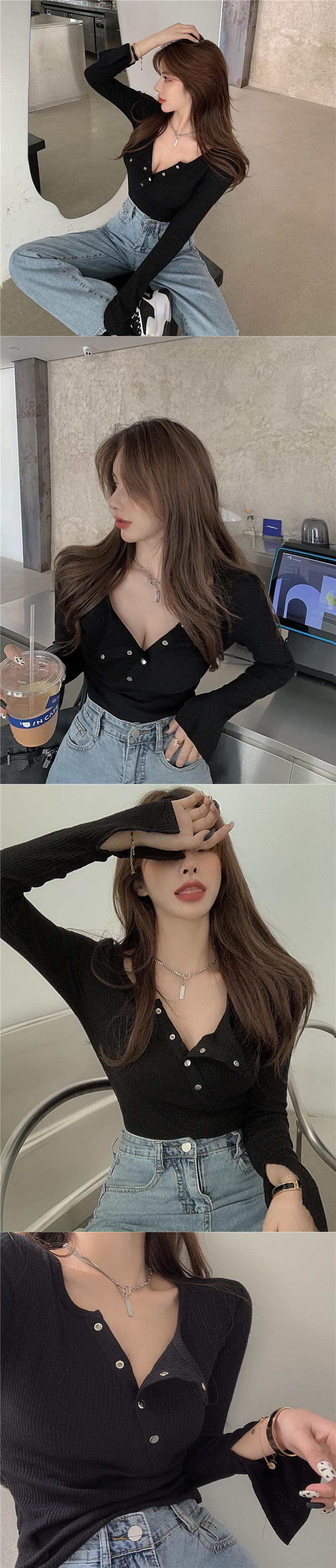 Vネックシャツ スプリングトップス スタイル薄手Tシャツ ロング 春物 セブンプリンセス89014513542