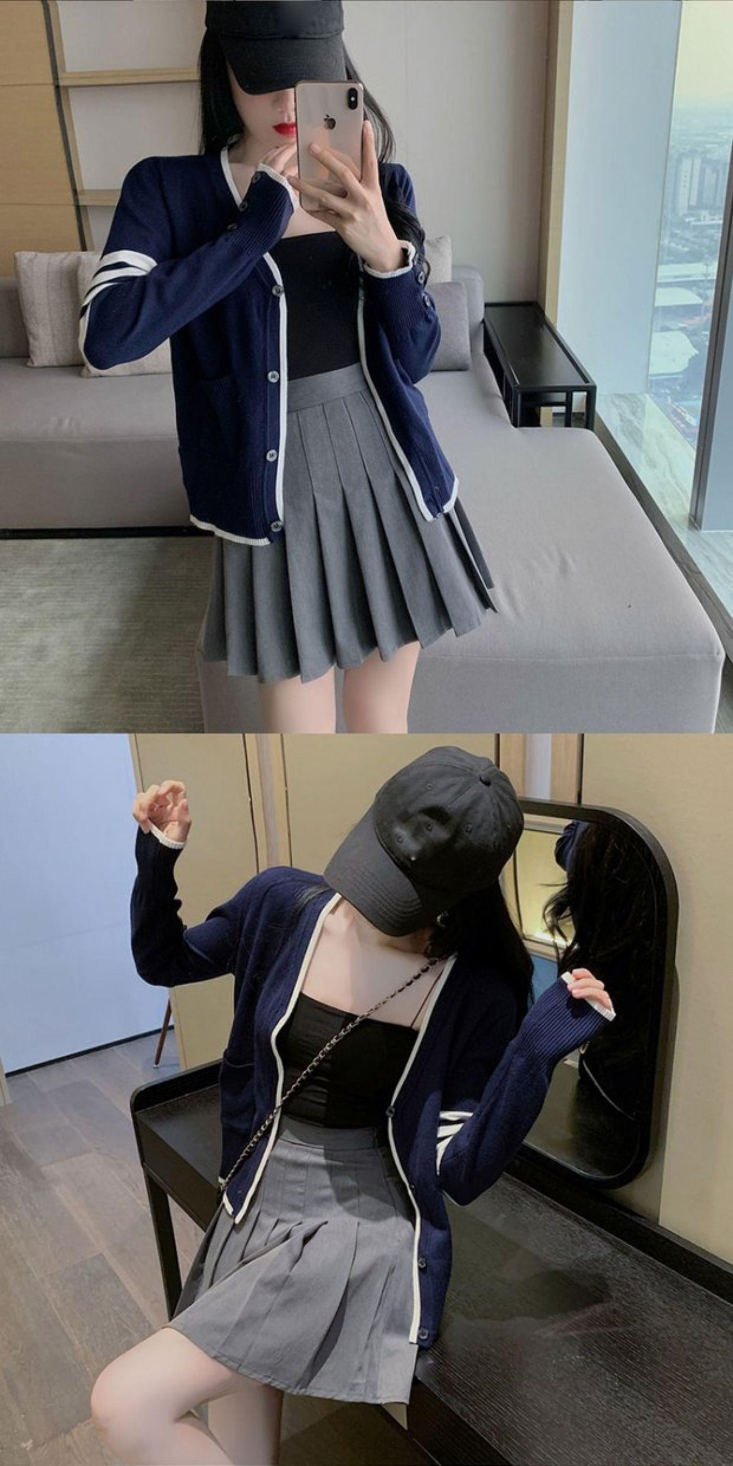 色:白いカーディガン,ネイビーブルーカーディガン