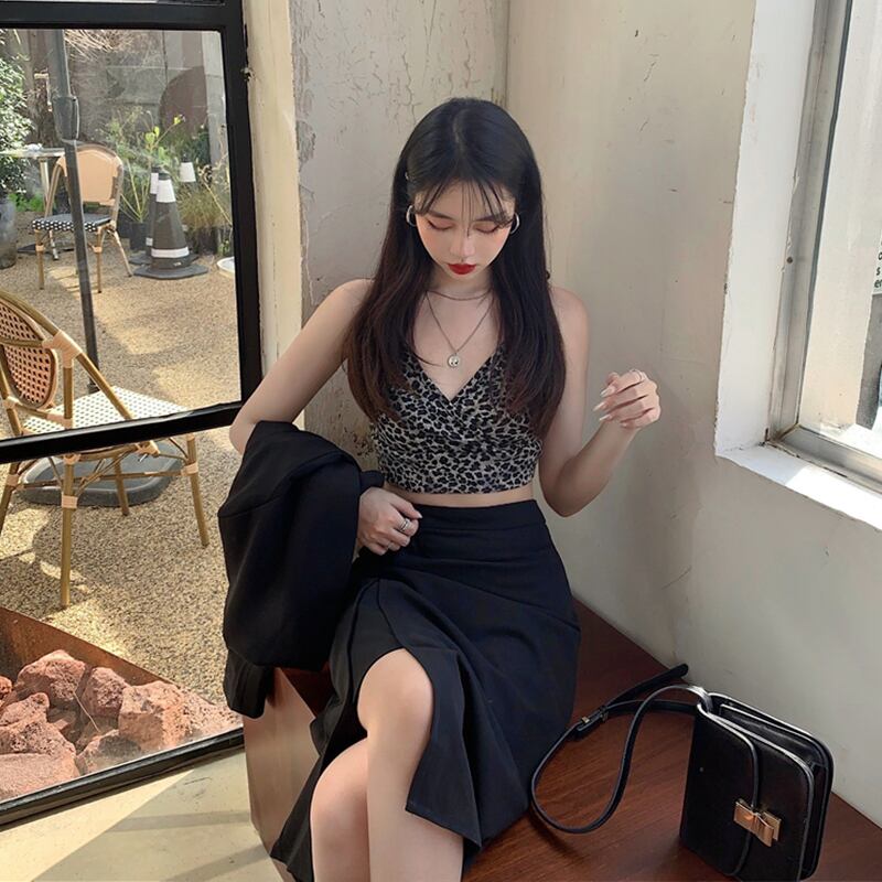 色:ヒョウストラップ,黒スカート,黒のブレザー
