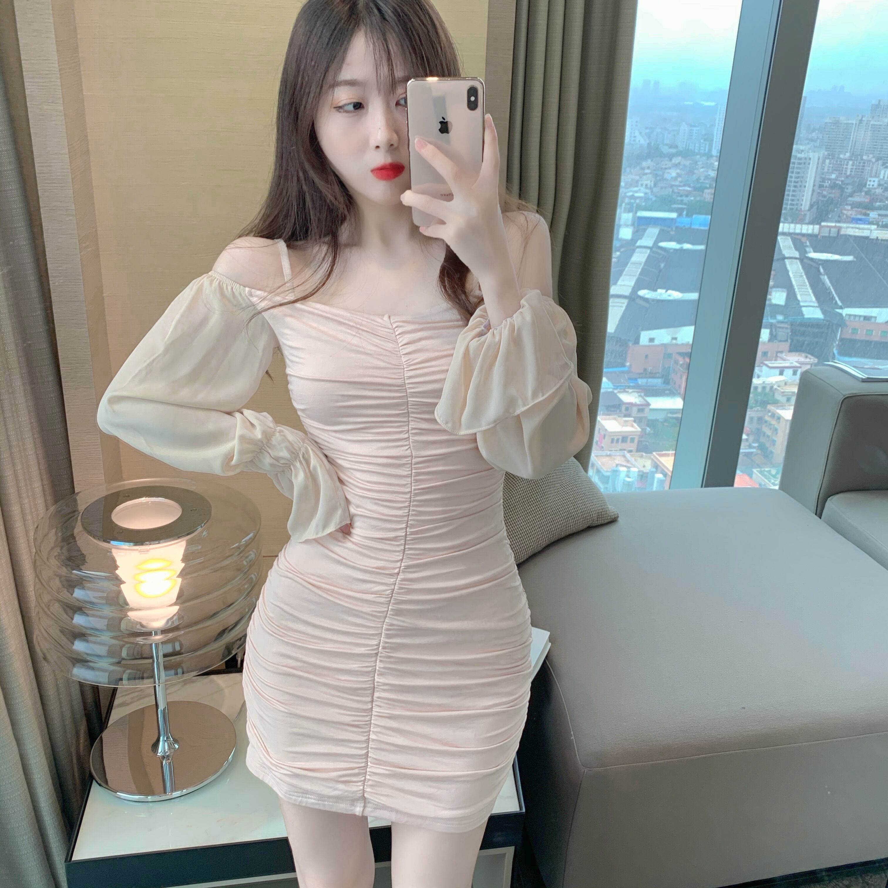 スリーブドレス スプリングウェストスカート スリムショート 大人ガーリー スウィート キュート カジュアル 春物 セブンプリンセス72235552551