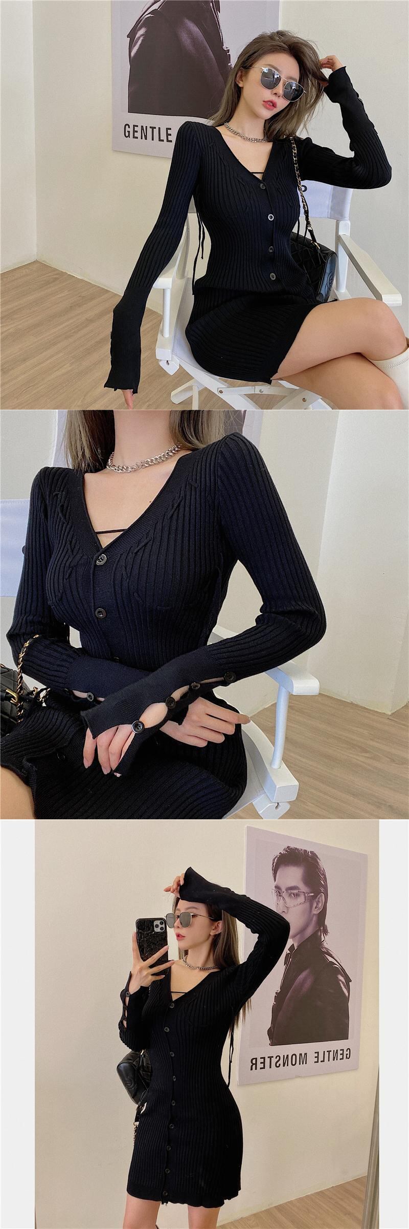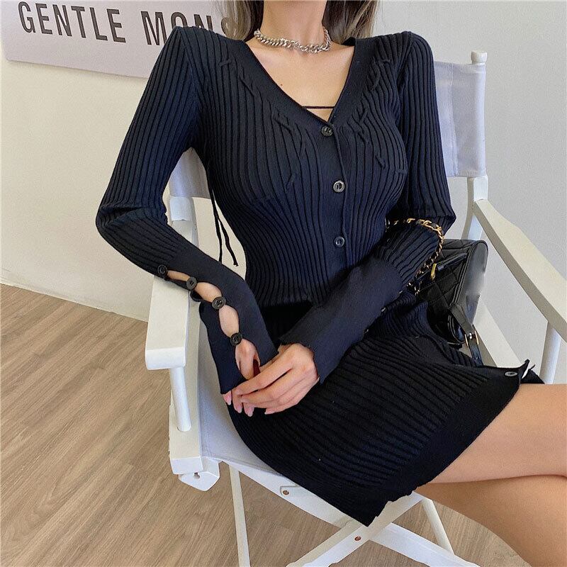 Vネックニットドレス スプリングウェストセーター スカート 春物 セブンプリンセス97477921234
