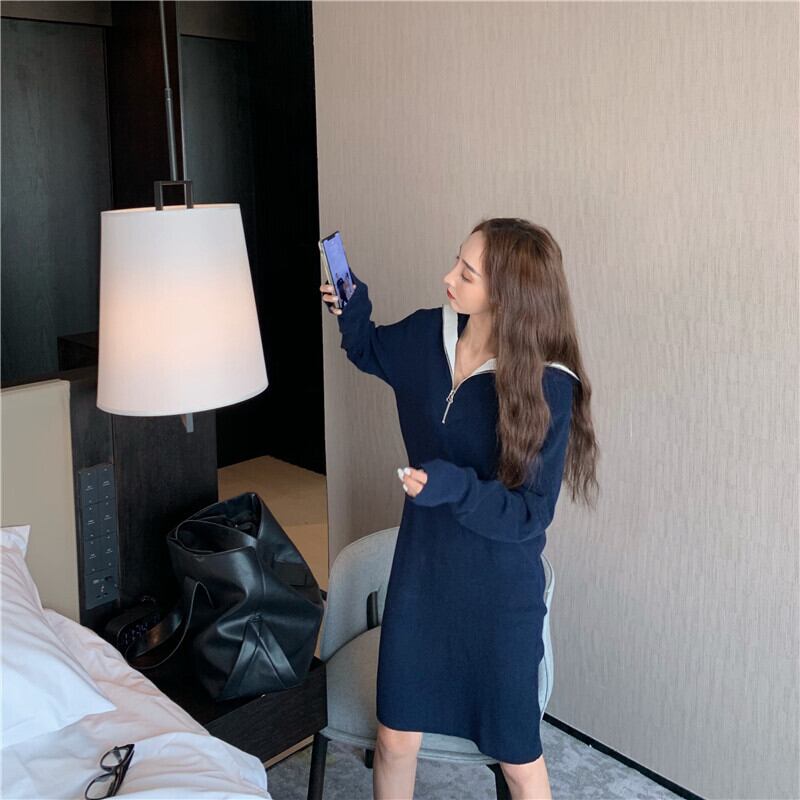 スタンダードジッパーニットドレス レディーススプリングスタイルルーズセーター スカート レトロ 春物 セブンプリンセス55682413293