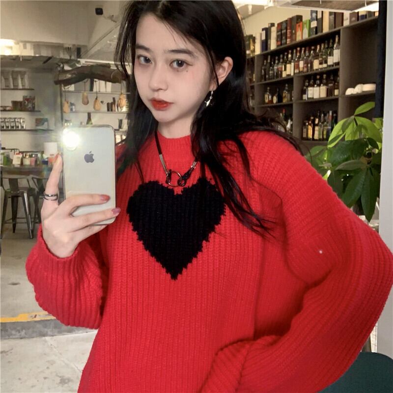 レッドセーター レディーススプリングラウンドネックニットトップス 春物 Oネック セブンプリンセス98215133289