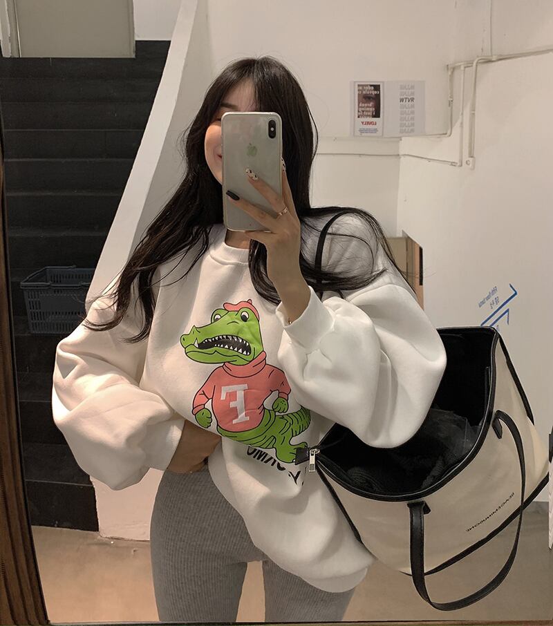 スプリングセーター ルーズプリント柄トップス ロング コットン 春物 セブンプリンセス45231541924