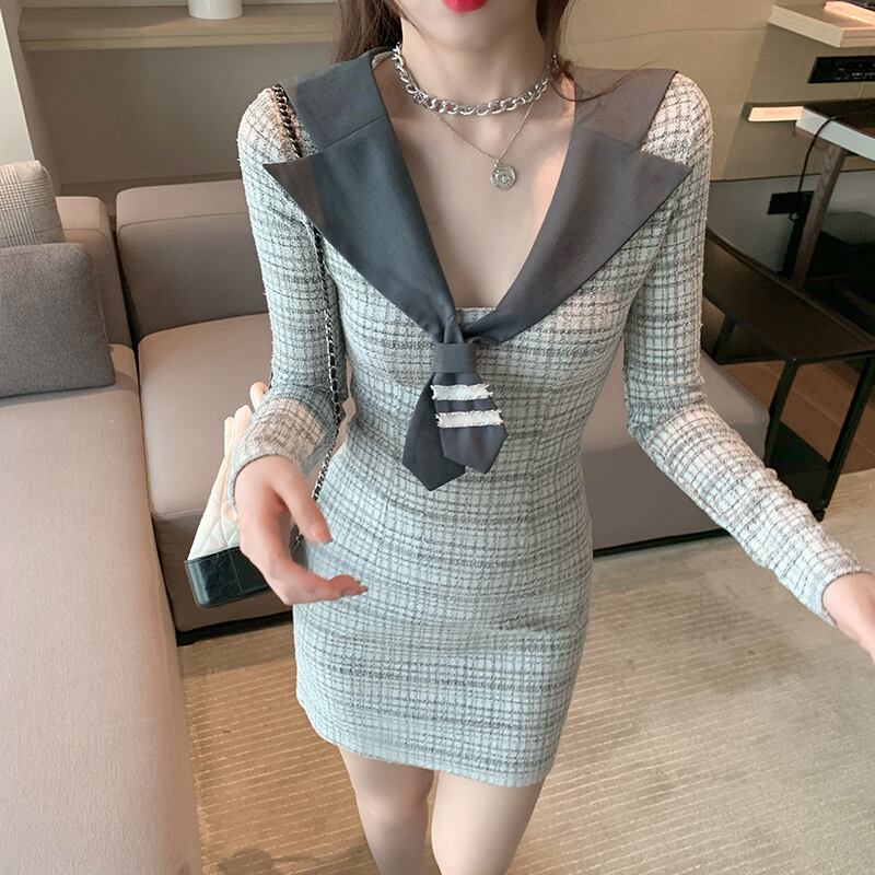 スプリングドレス ツィードネイビーカラーウェストスカート ショート 春物 セブンプリンセス88729643445