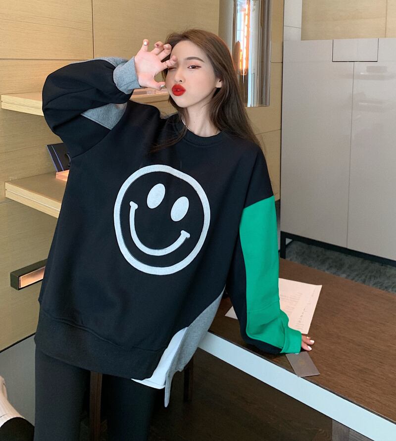 ラウンドネックセーター スプリングルーズプリントトップス ロング 春物 Oネック セブンプリンセス35204036622