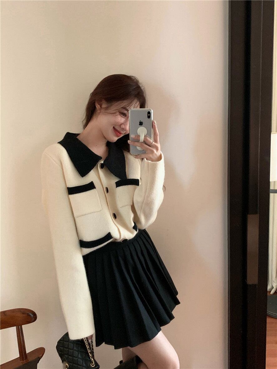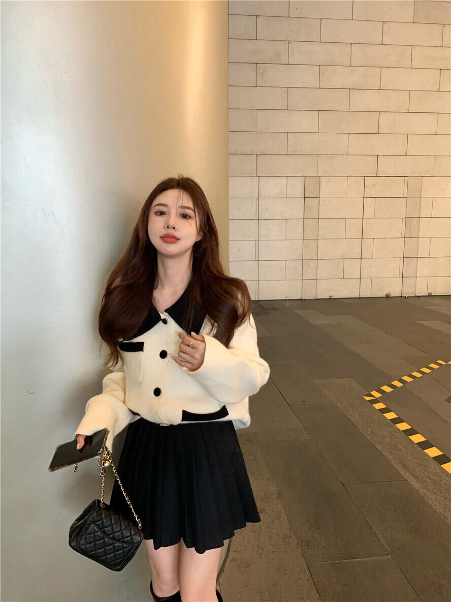 色:プリーツスカート,セーター