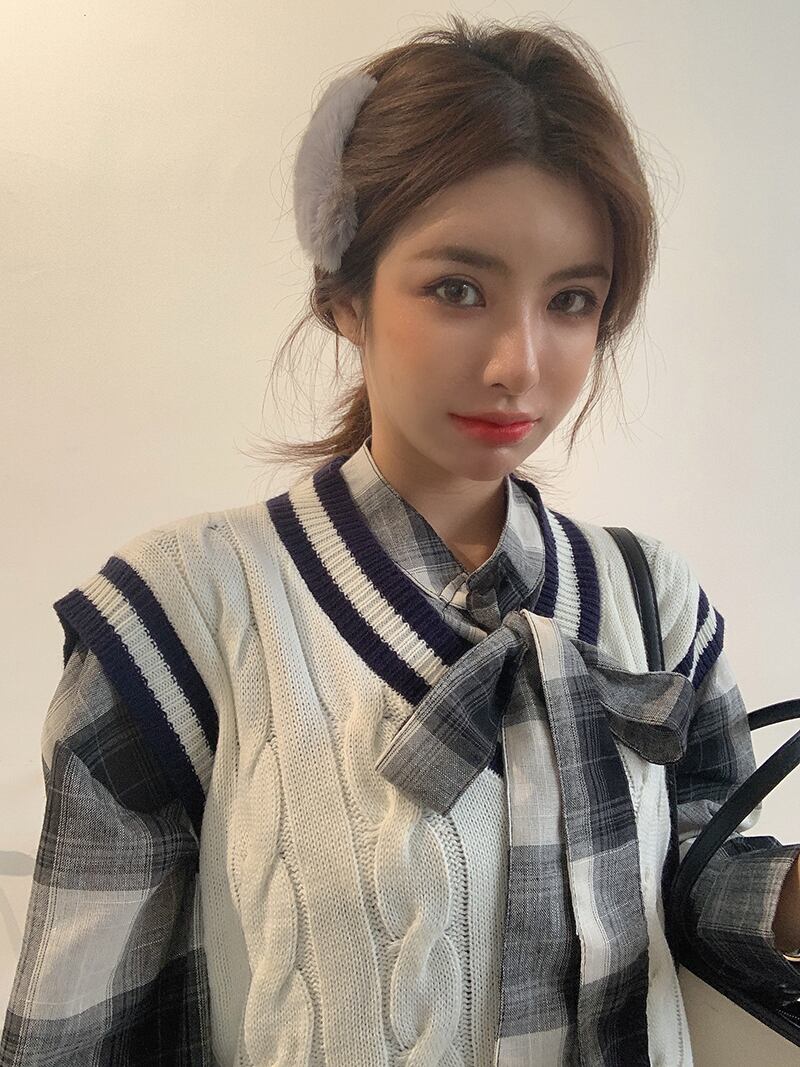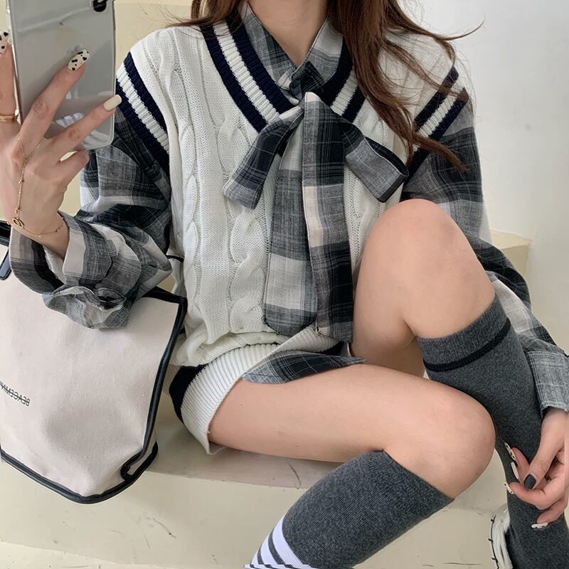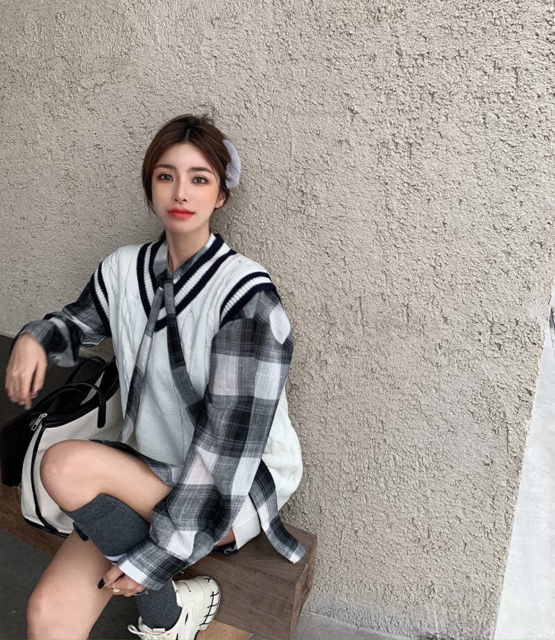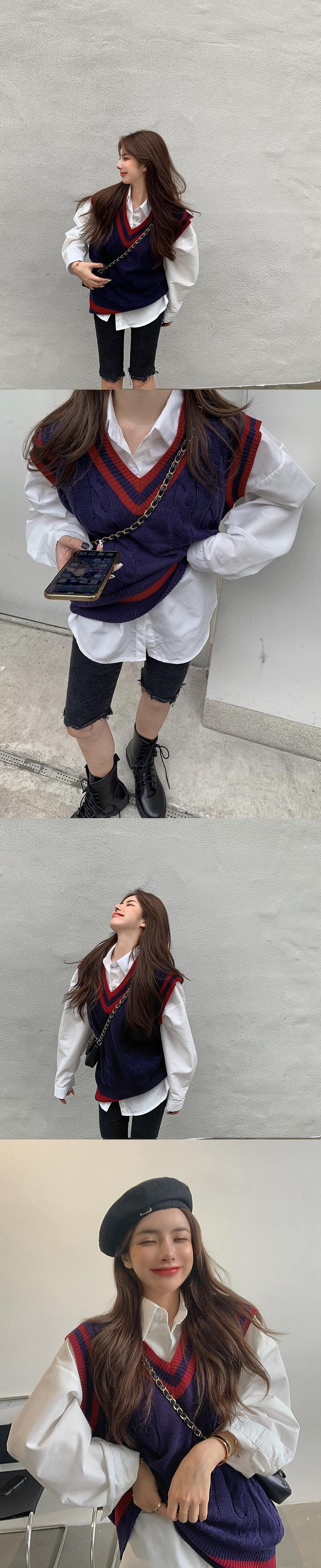 Vネックスタイルニットレディーススプリングルーズセーター ノースリーブジャケット 春物 セブンプリンセス39604886237