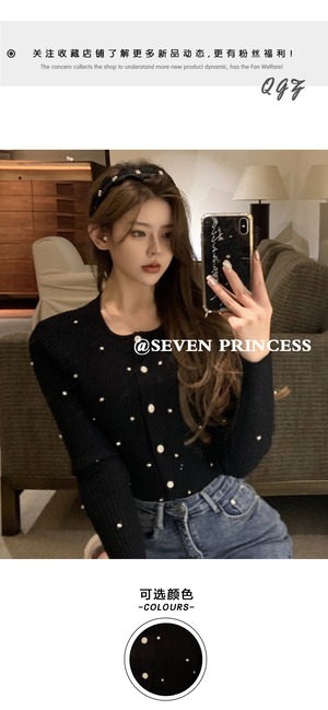 ブラックセーター スプリングスリムショートブラウス シャツ 春物 セブンプリンセス94510163435