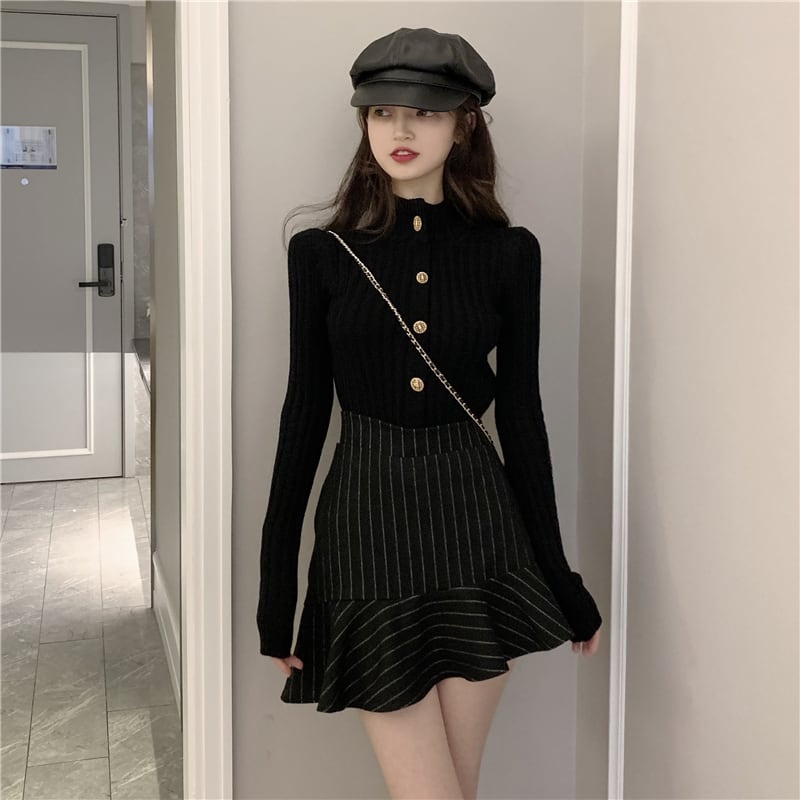 ラッフルスカート ハイウェストウェストAラインスプリングスタンダードストライプショートレディース レトロ 春物 セブンプリンセス52032377853