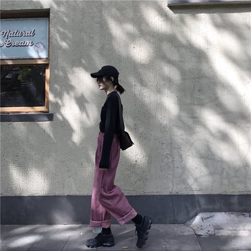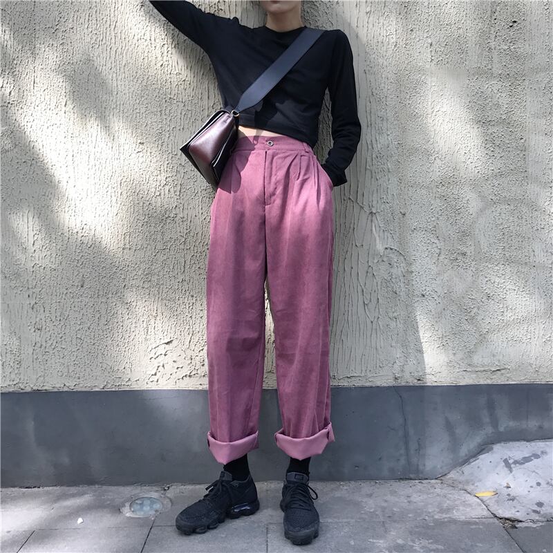 コーデュロイパンツ レディーススプリングハイウェストルーズ薄手カジュアル 春物 セブンプリンセス58549858661