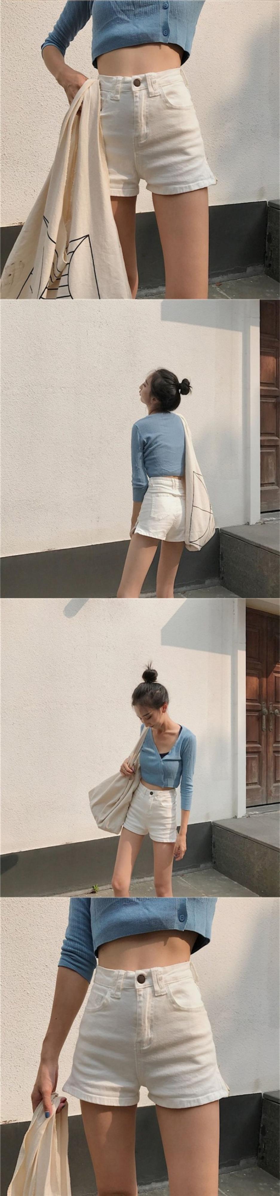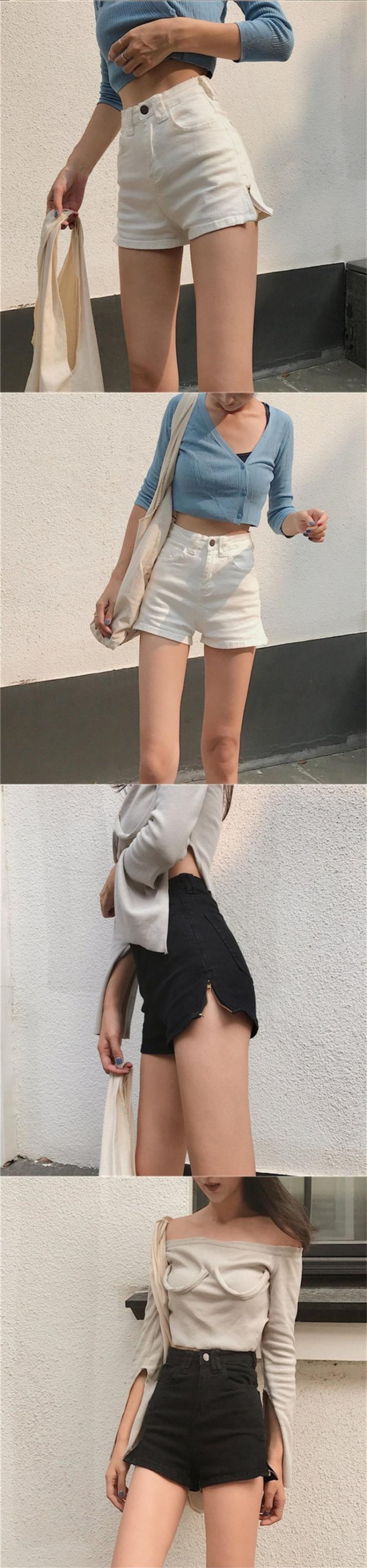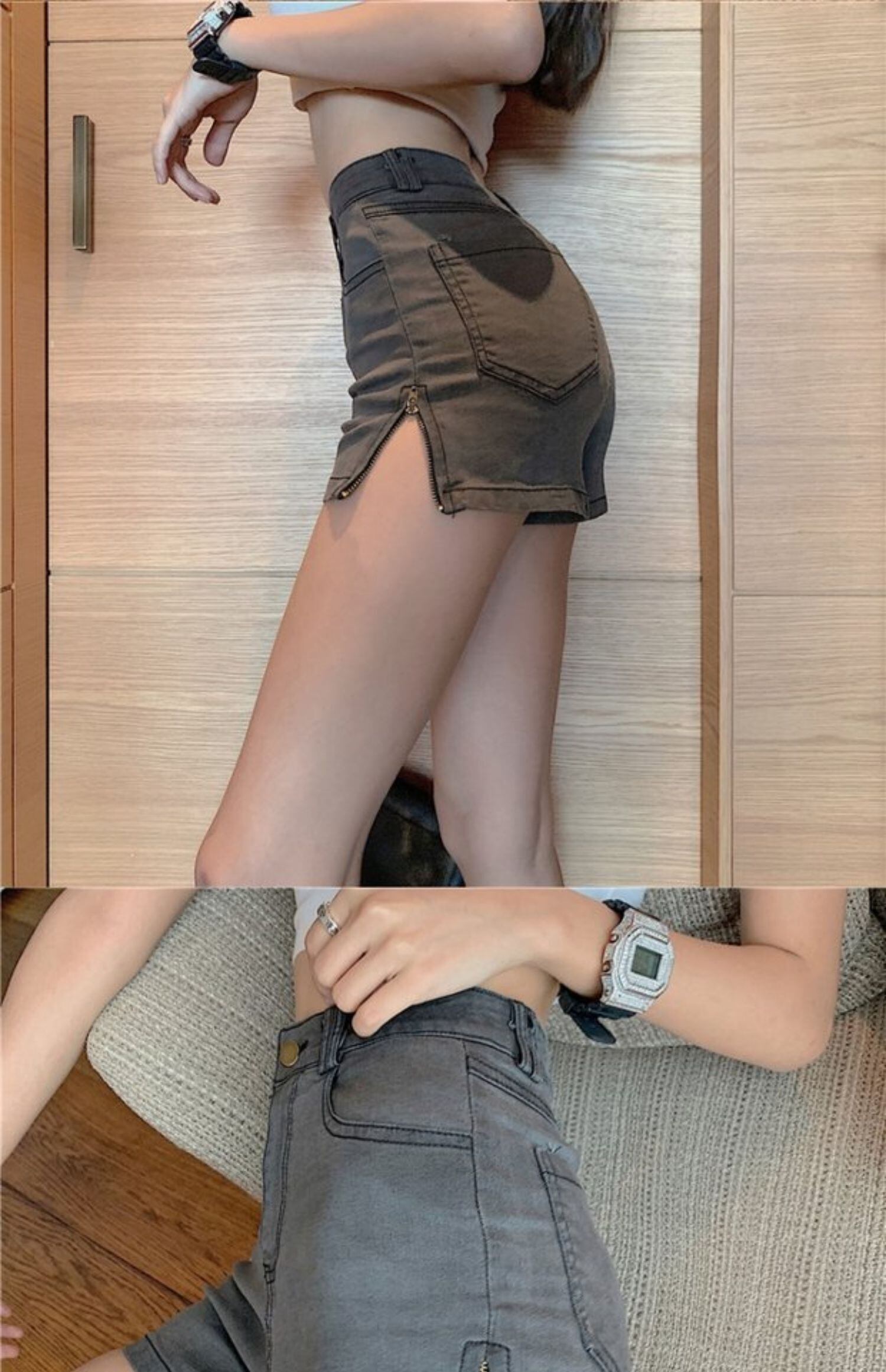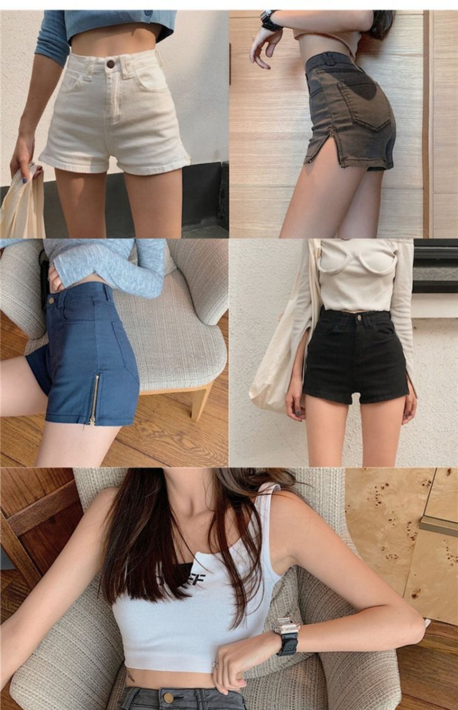 スタンダードハイウェストウェストショーツ レッドスプリングサイドジッパーAラインパンツ スタイルスリムジーンズ レトロ 春物 ブルマー セブンプリンセス71881780558