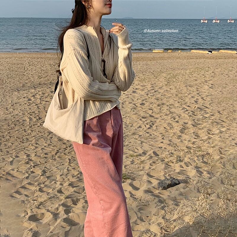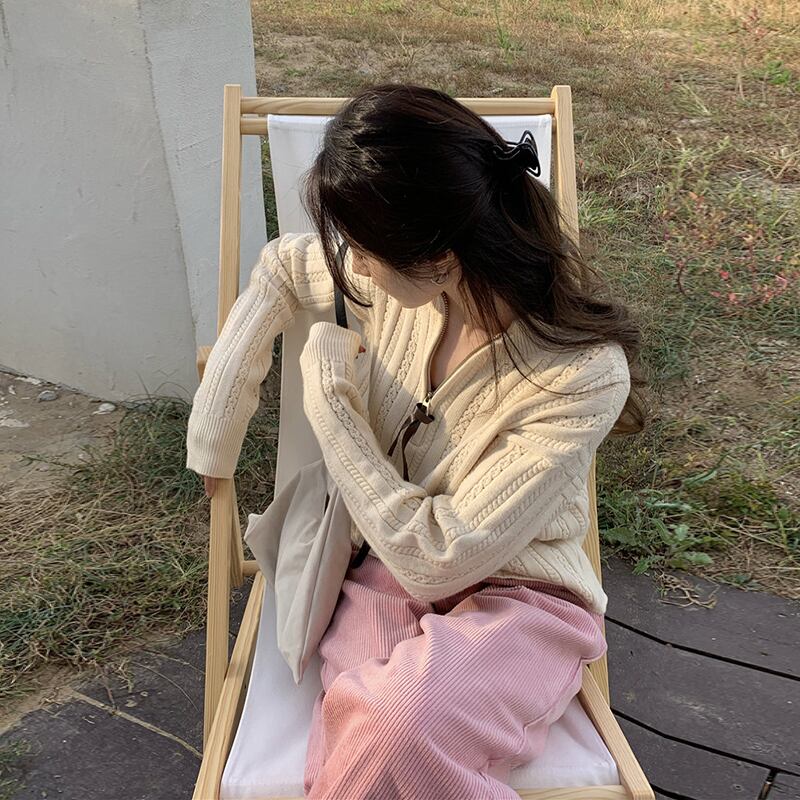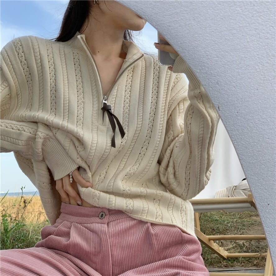ジッパーセーター レディースルーズスプリングスタイルニットシャツ トップス ロング 春物 セブンプリンセス7875859058