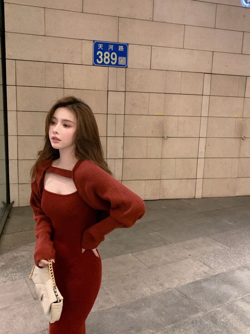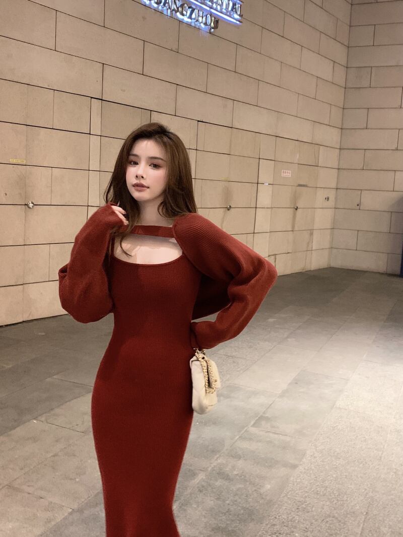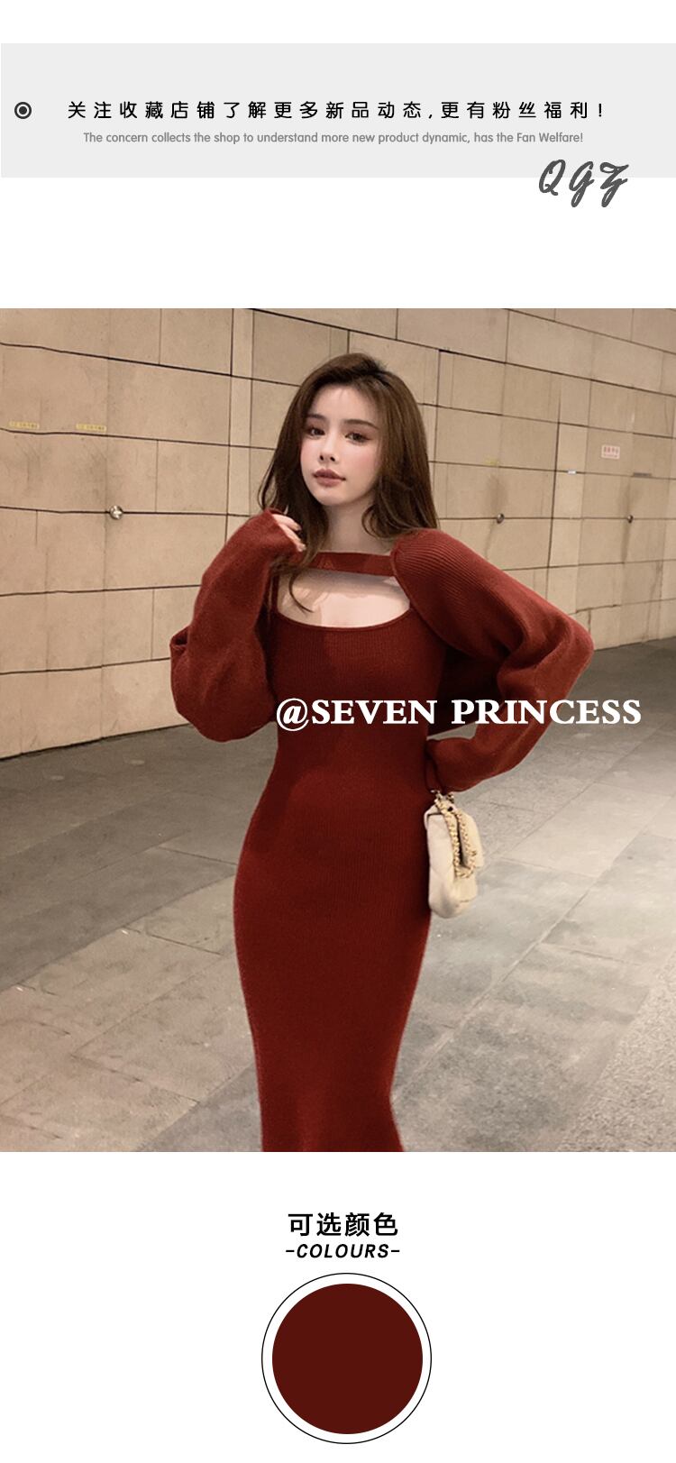レッドニットドレス スプリングセーター スカート 薄手 春物 セブンプリンセス27833287193