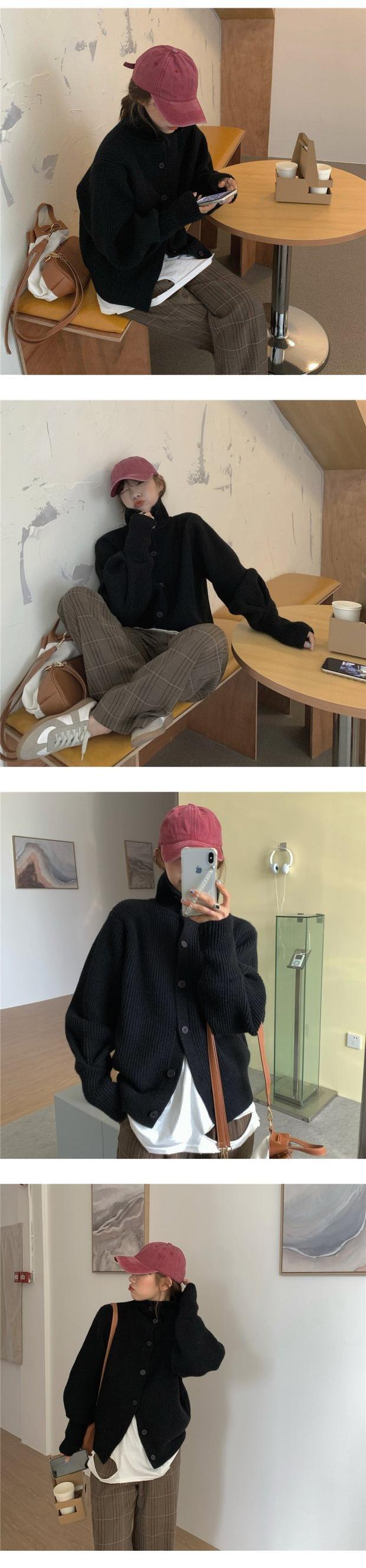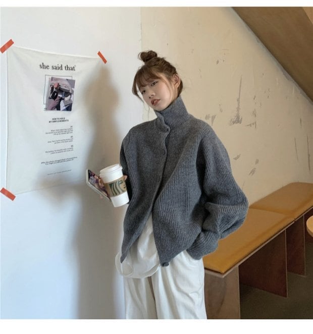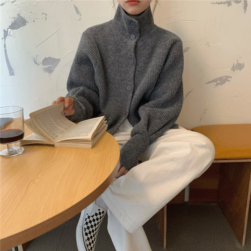 グレーカーディガンセーター ジャケット ニット スプリングルーズスタイル長袖スリーブトップス ロング 春物 セブンプリンセス32156210953