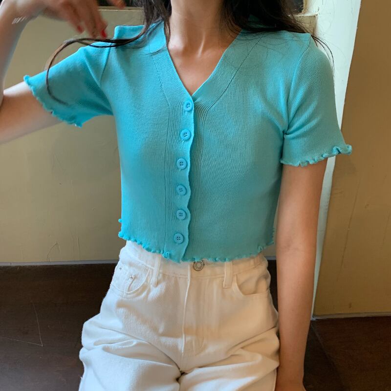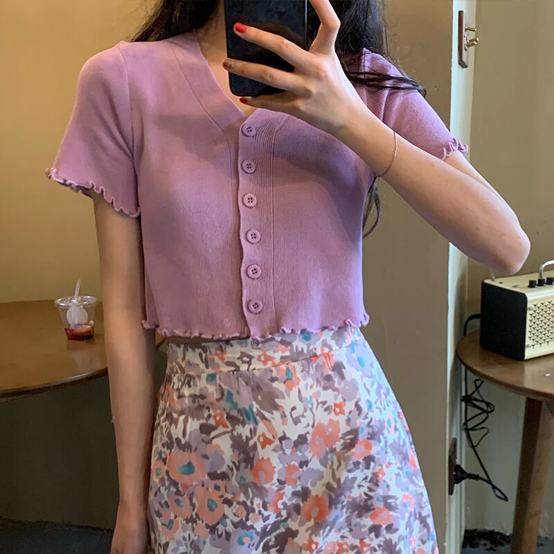 ショートVネックセーター カーディガンジャケット ニット スプリング薄手トップス 春物 セブンプリンセス10516202854